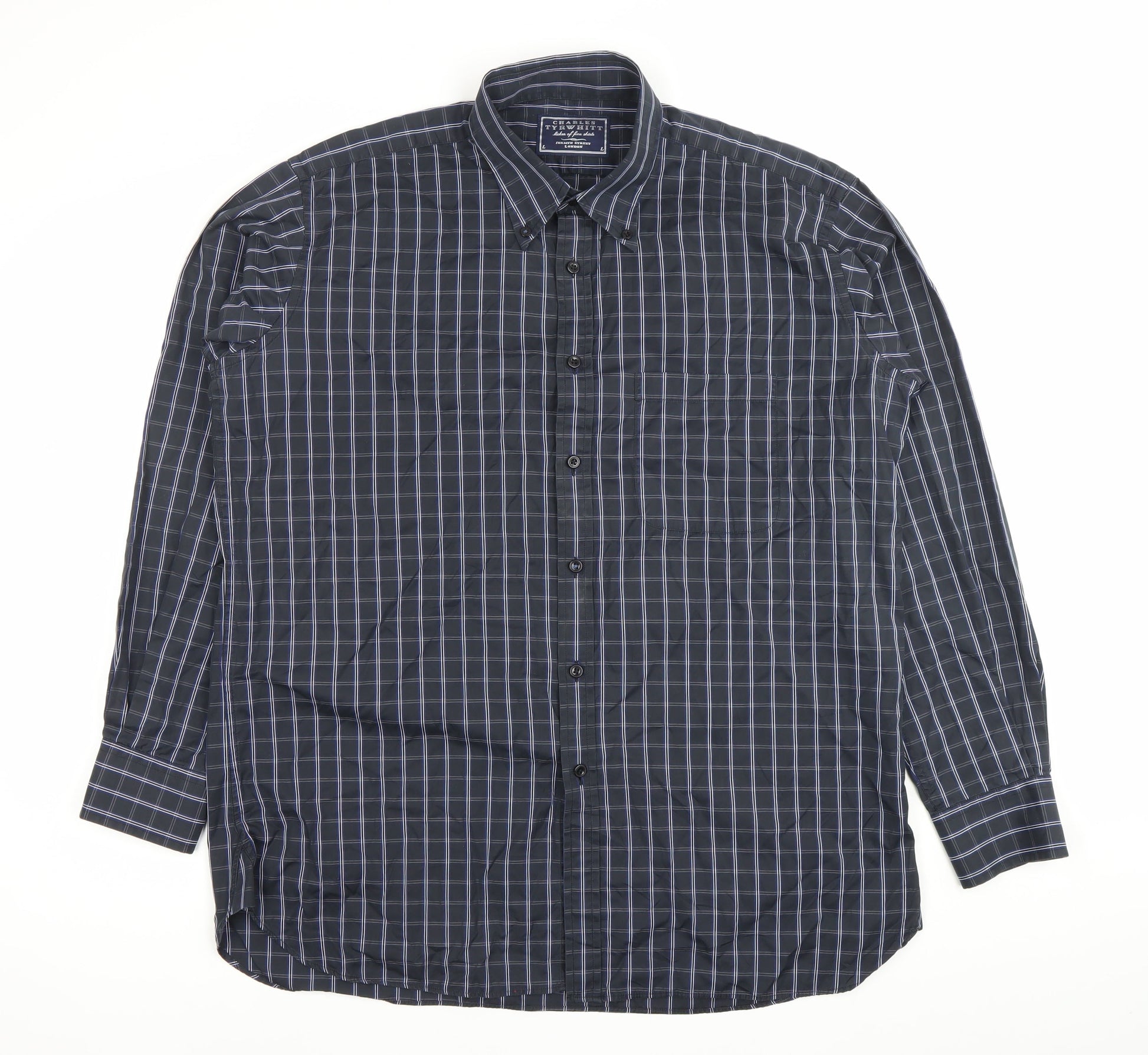 Charles Tyrwhitt Men's Blue Check Cotton Dress Shirt L Long Sleeve