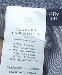 Charles Tyrwhitt Men's Blue Dress Pants, Extra-Slim, 34W