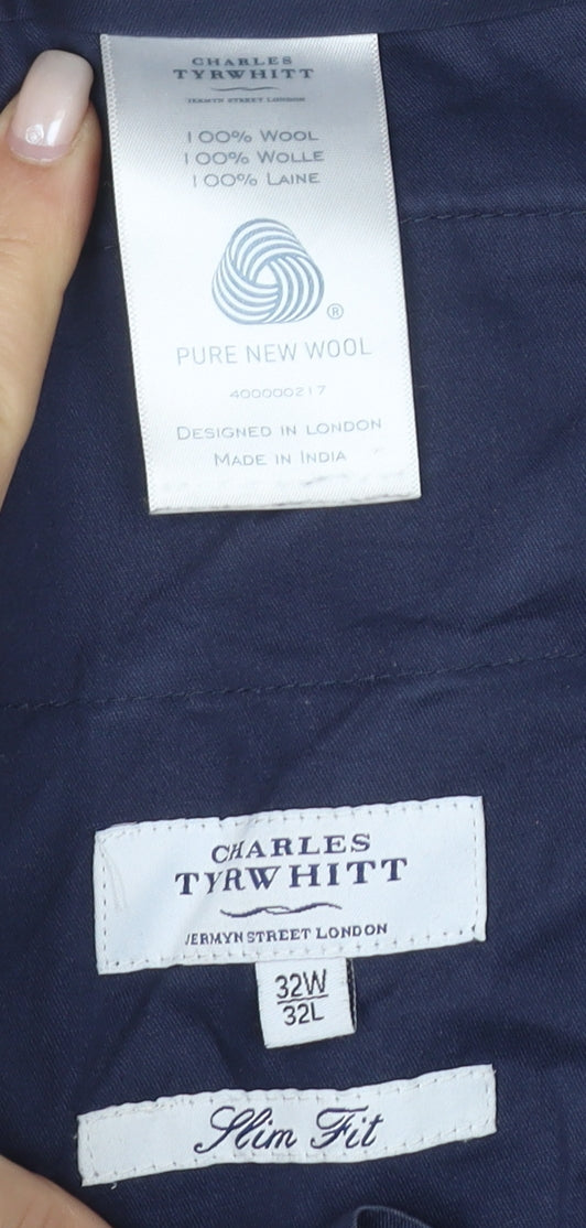 Charles Tyrwhitt Men's Blue Slim Fit Wool Dress Pants