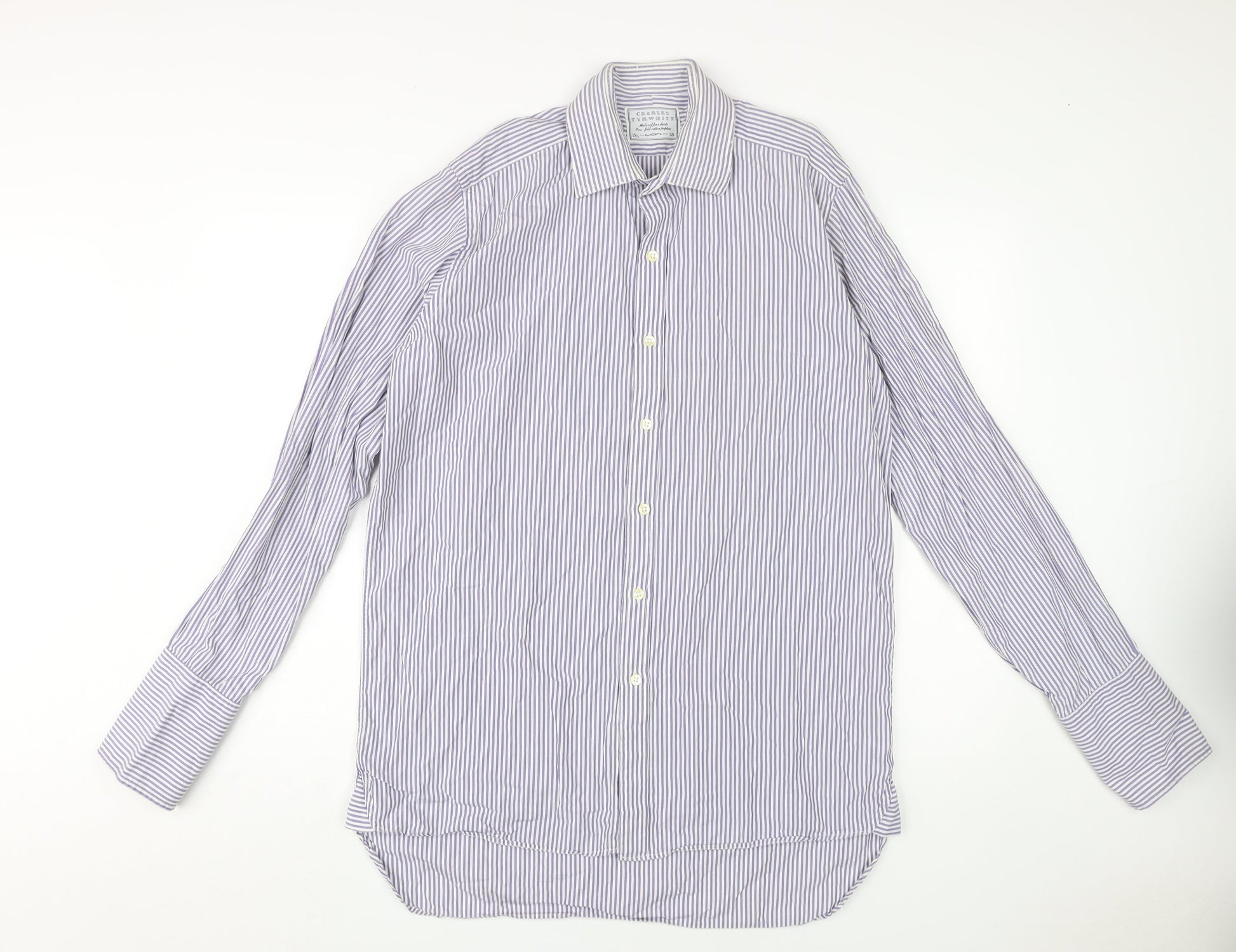 Charles Tyrwhitt Men's Blue Striped Dress Shirt 15.5,35