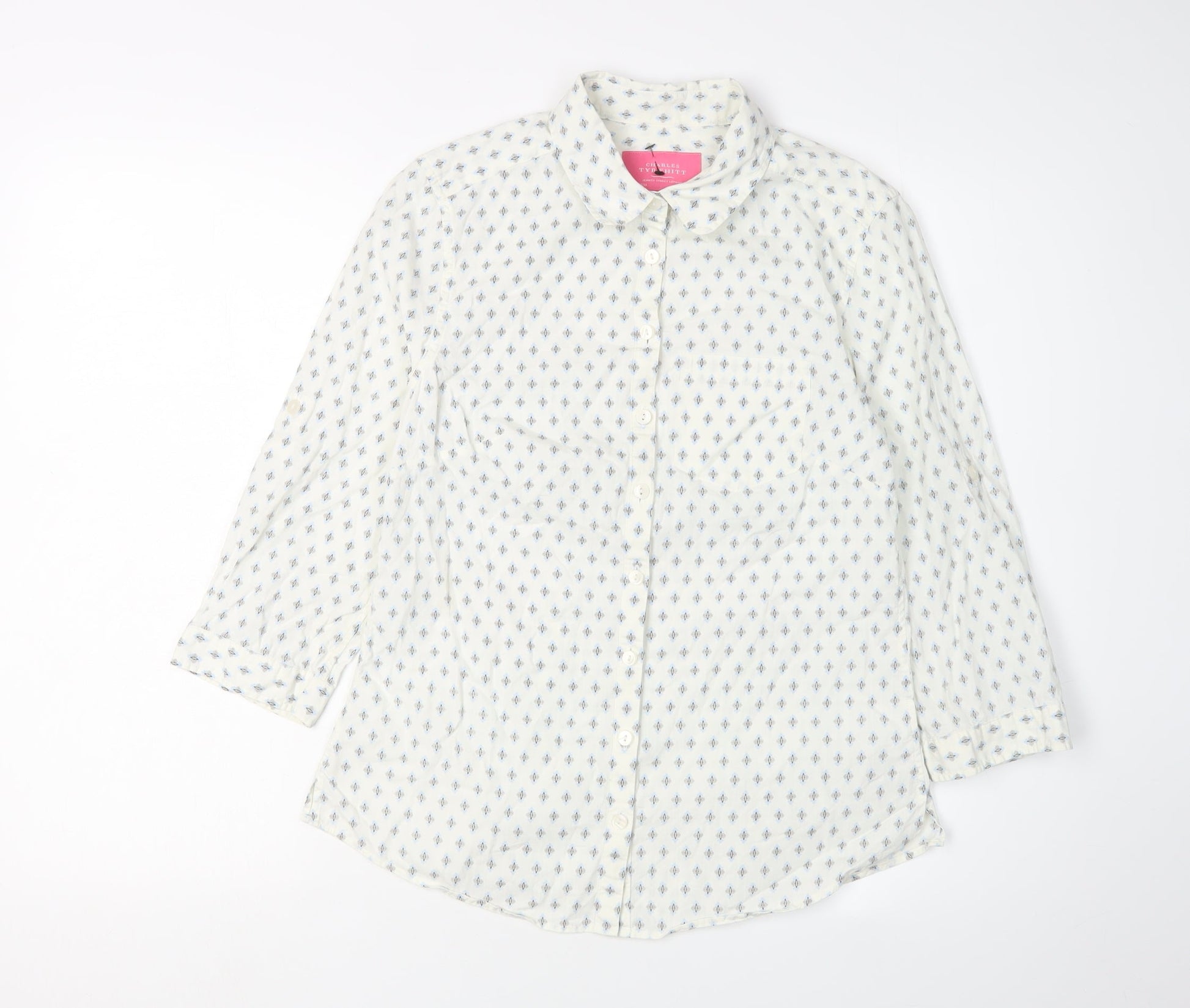 Charles Tyrwhitt Women's White Geometric Button-Up, Size 8