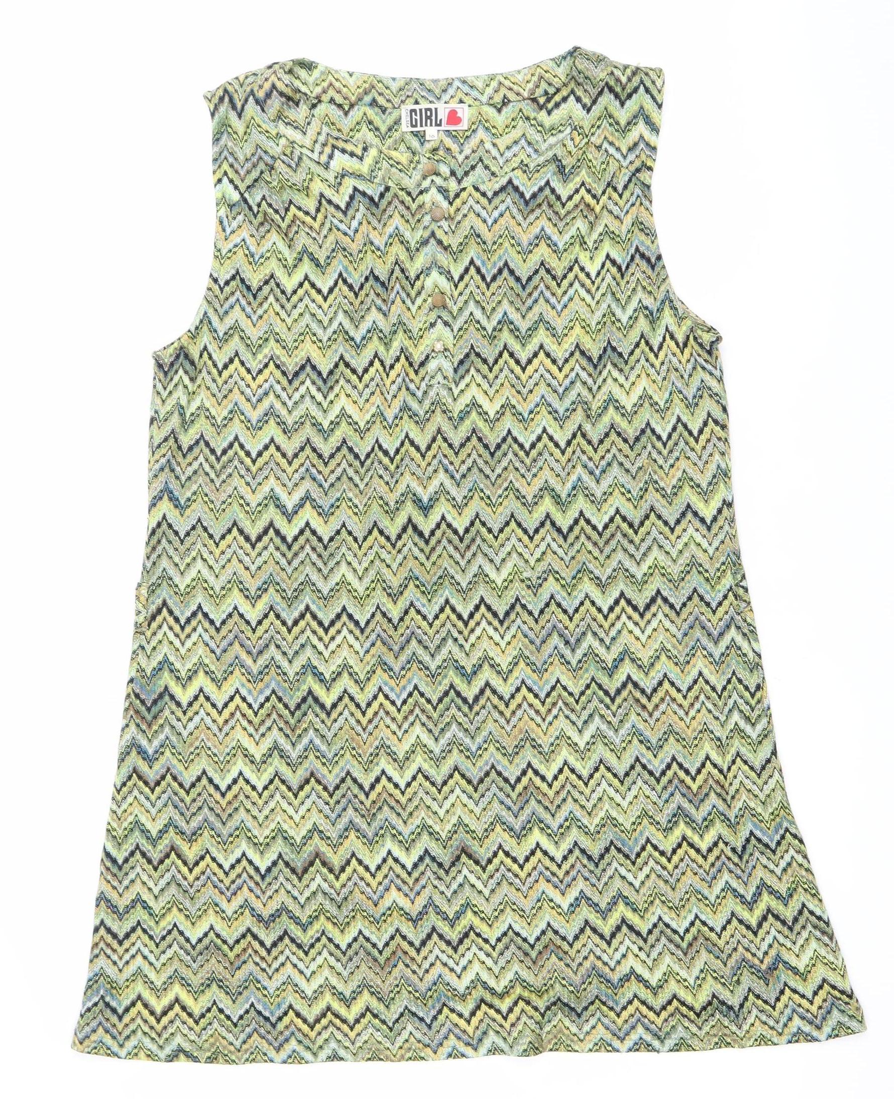 Chelsea Girl Women’s Multicoloured Chevron Shift Dress Size 16 Sleeveless Retro