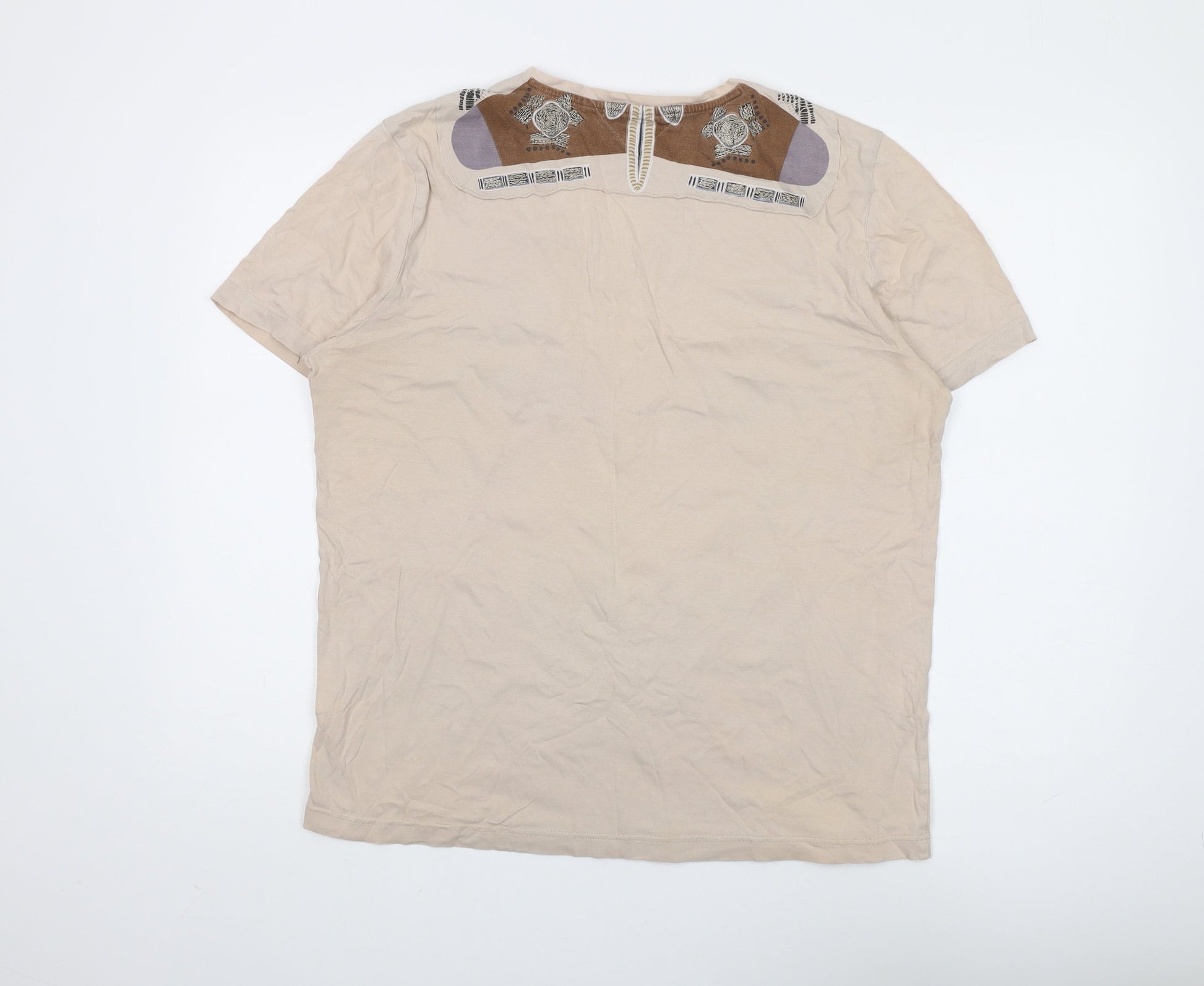 Christian Lacroix Women's Beige V-Neck T-Shirt Size 20