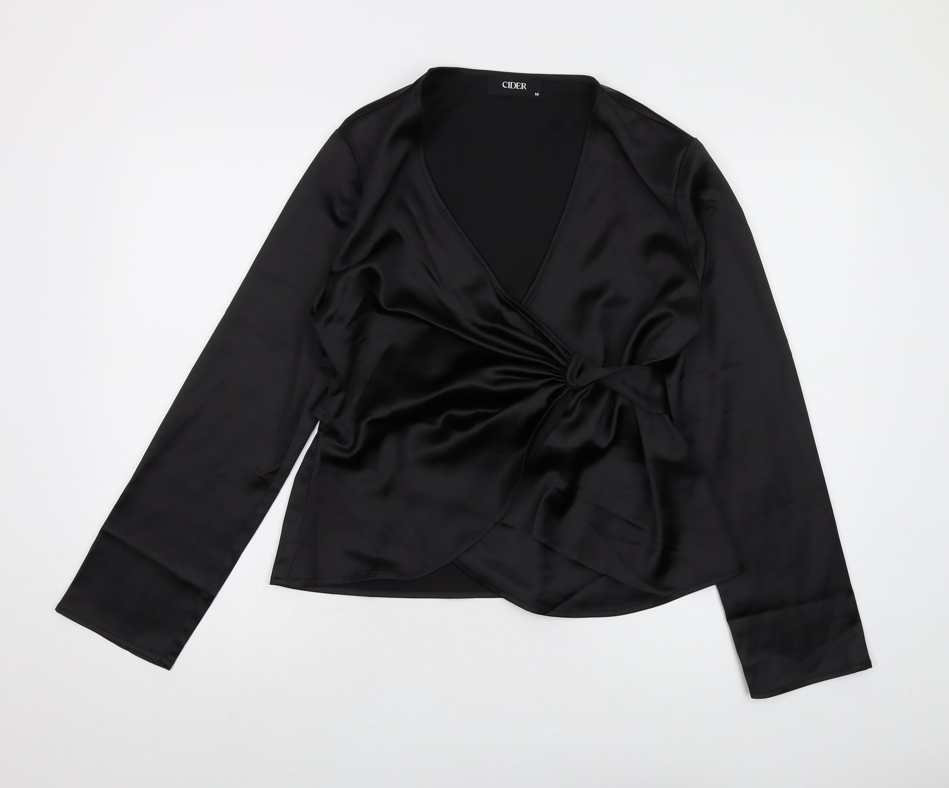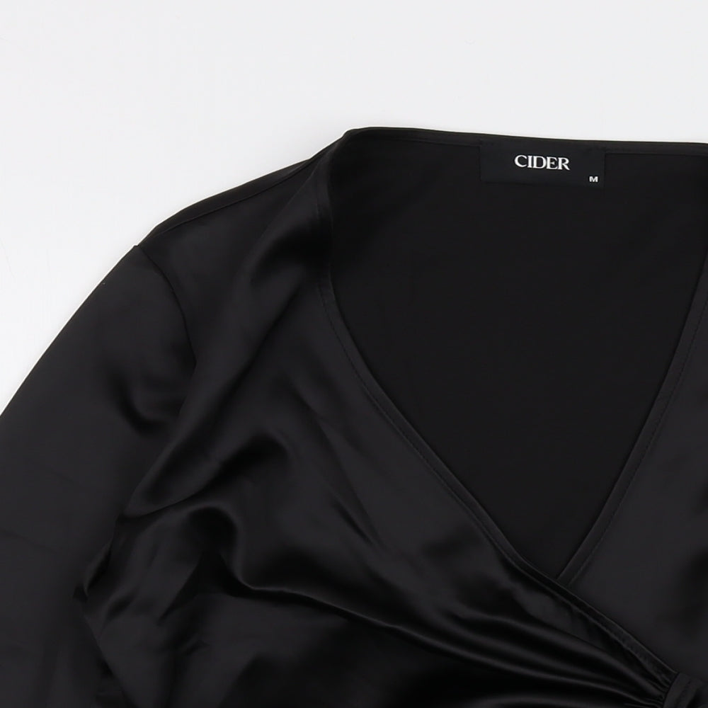Cider Womens Black Polyester Wrap Blouse Size M V-Neck
