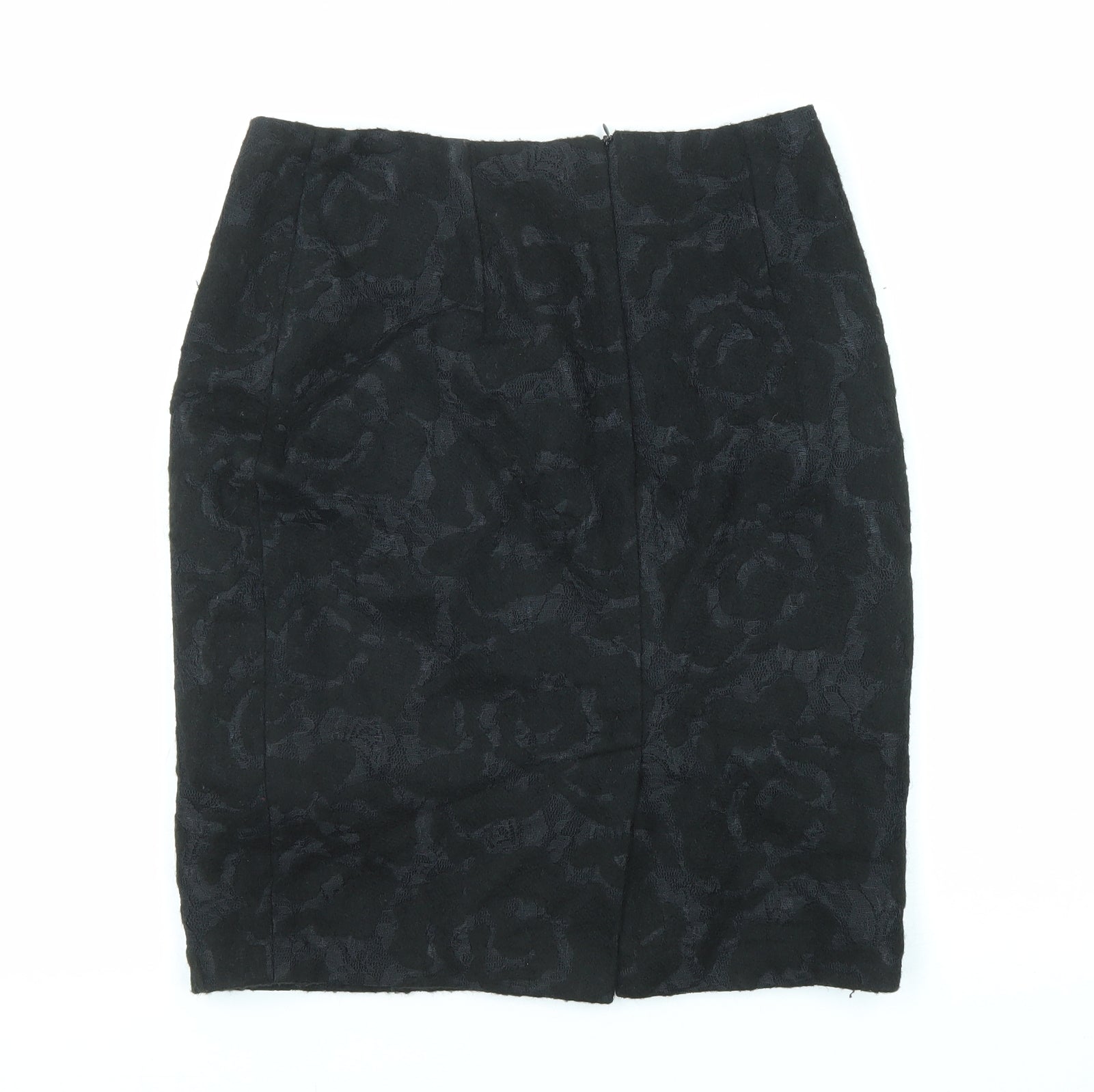 Clements Ribeiro Womens Black Floral Polyester Straight & Pencil Skirt Size 10 Zip