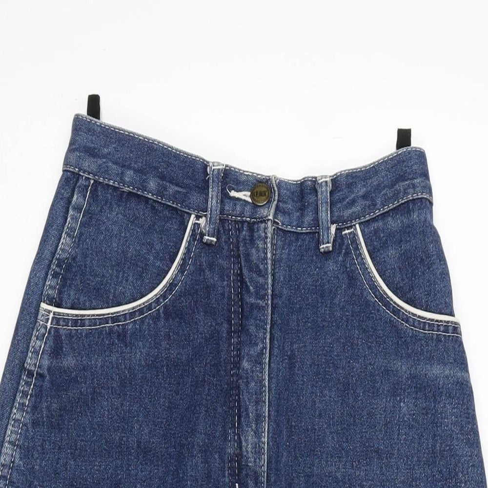Click Womens Blue Cotton A-Line Skirt Size 24 in Zip