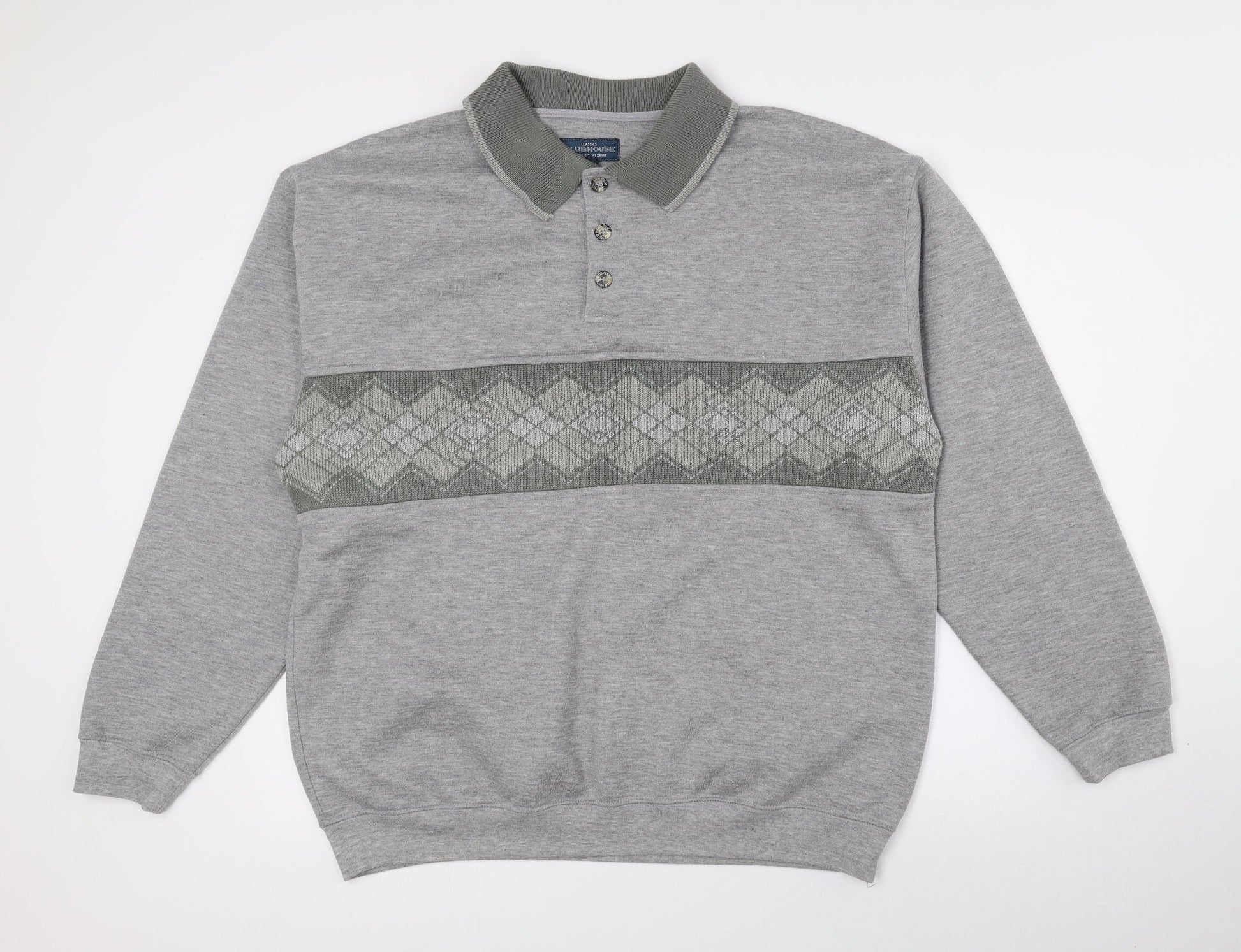 CLUB HOUSE Mens Multicoloured Geometric Polyester Pullover Sweatshirt Size XL