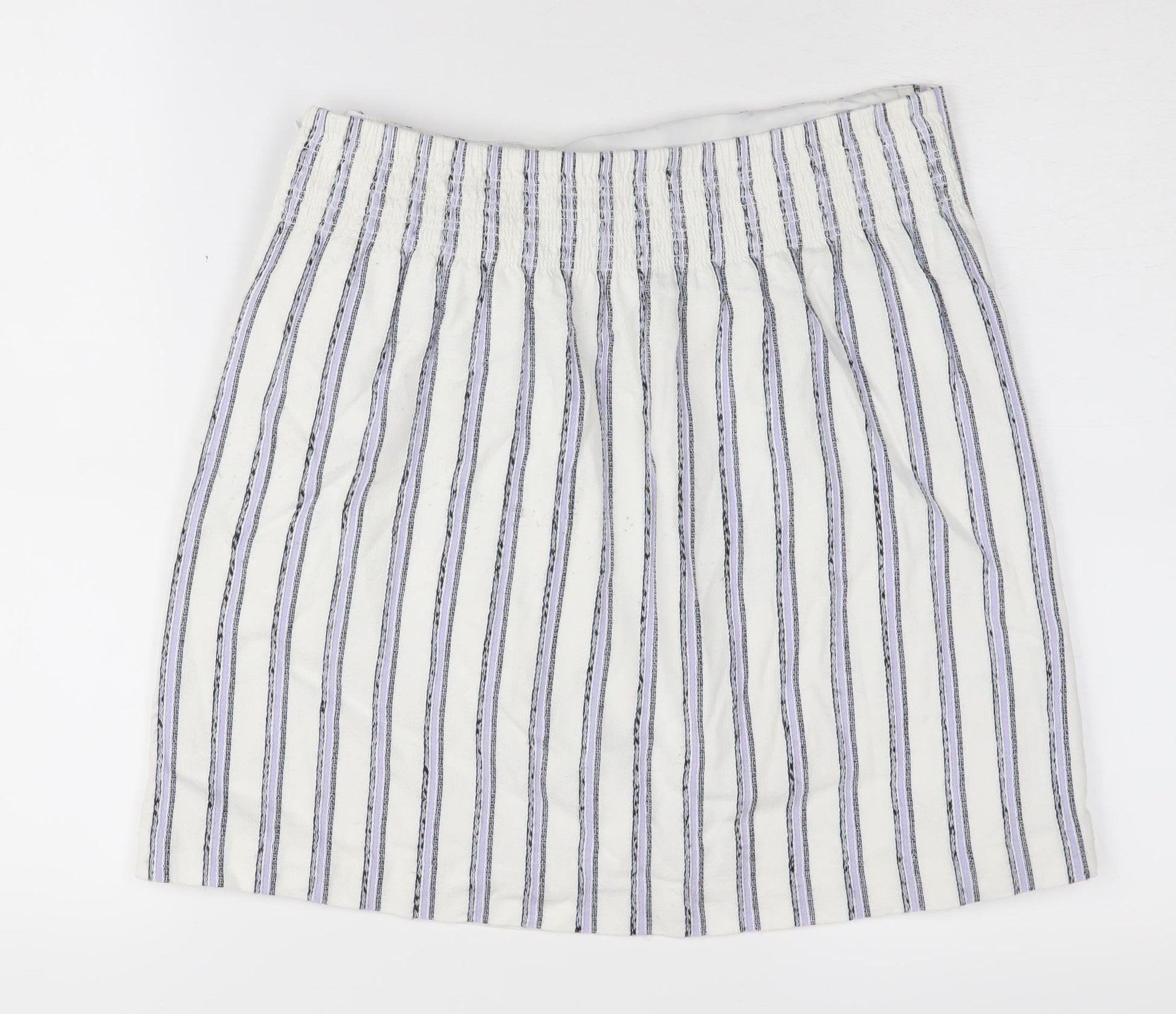 Club Monaco Women's White Wrap Skirt, Size M, Striped