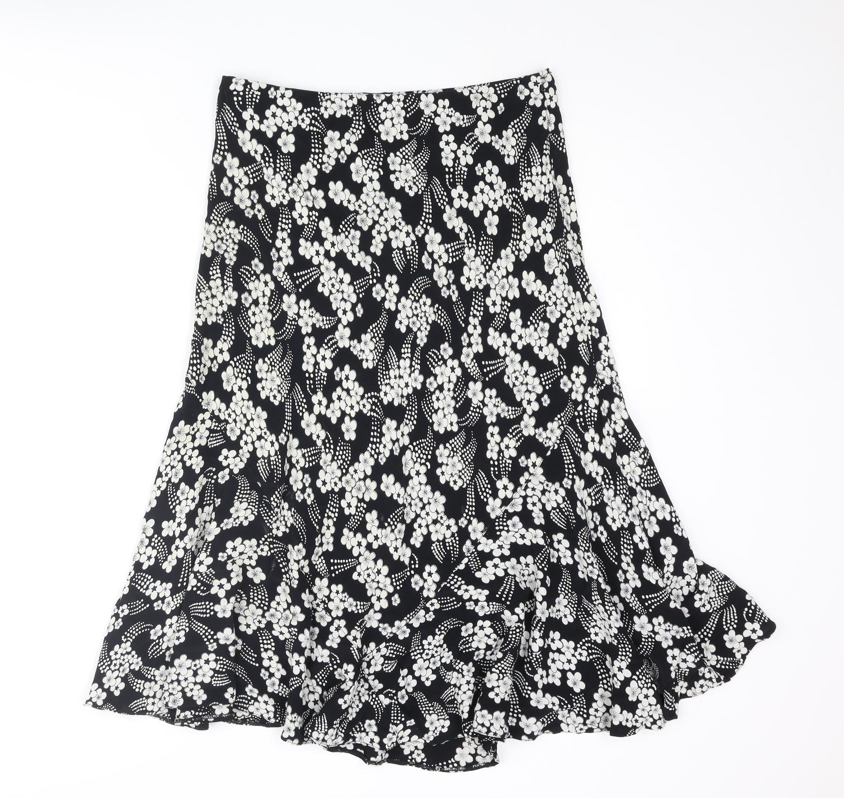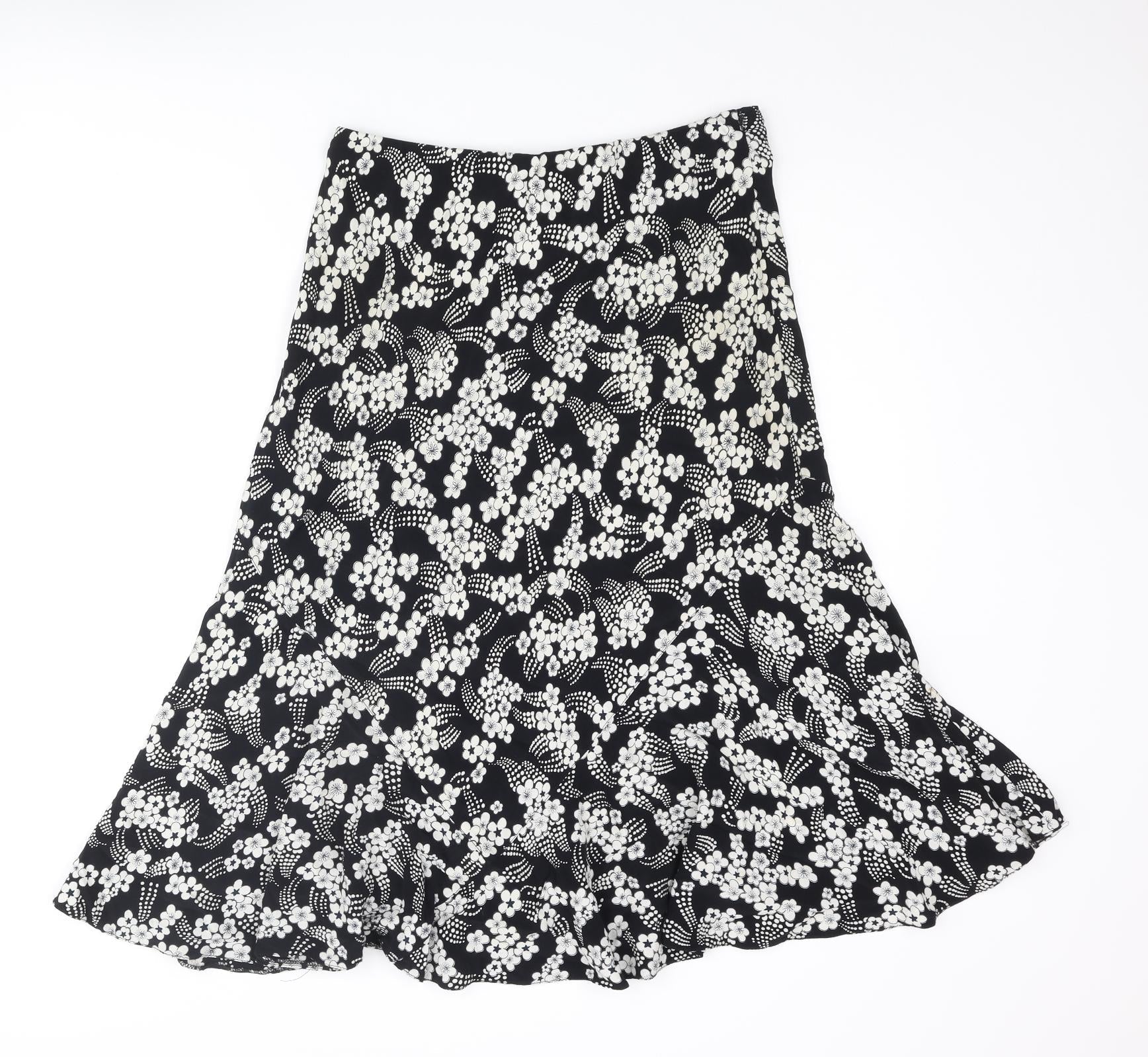 CMD Womens Black Floral Polyester Trumpet Skirt Size 14