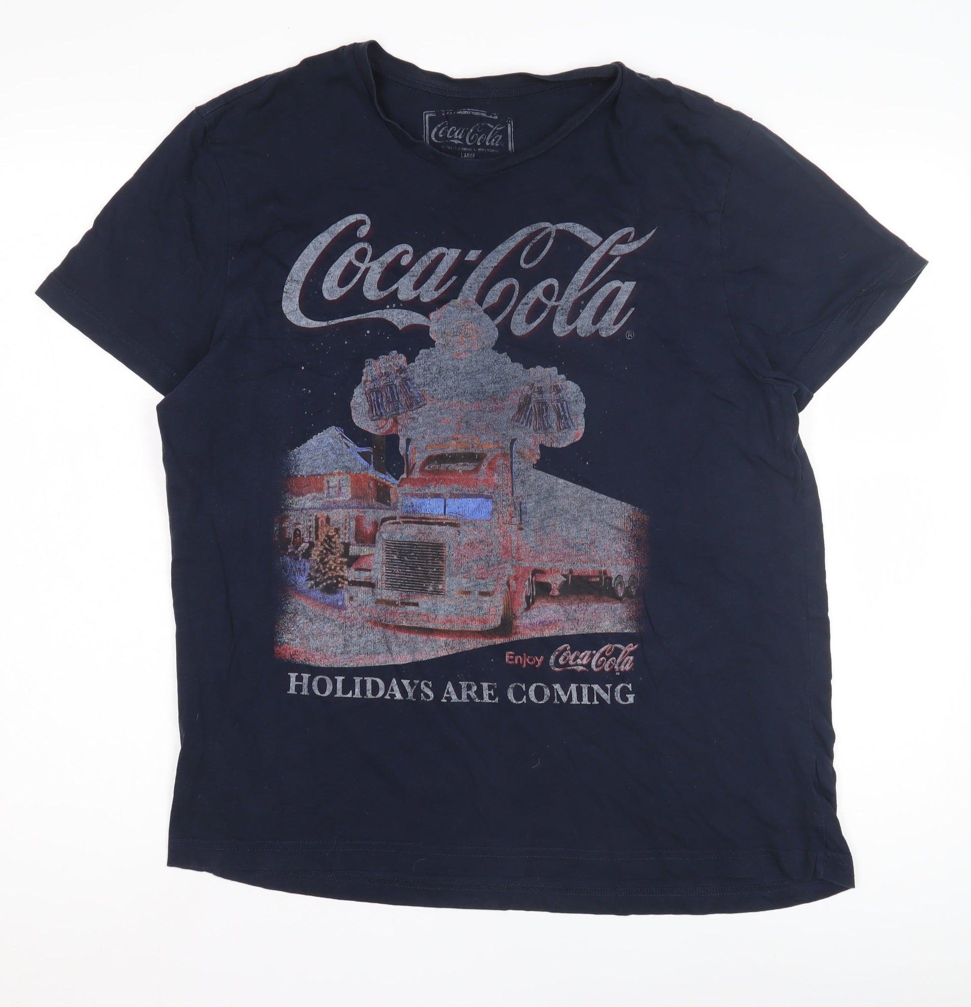 Coca-Cola Men's Blue Christmas T-Shirt - Large