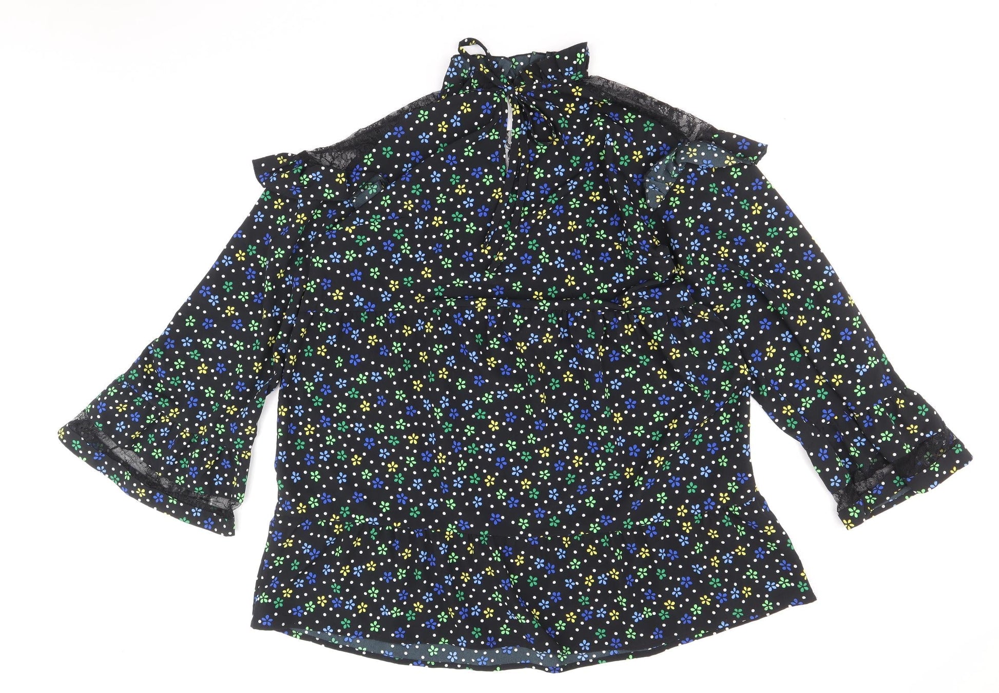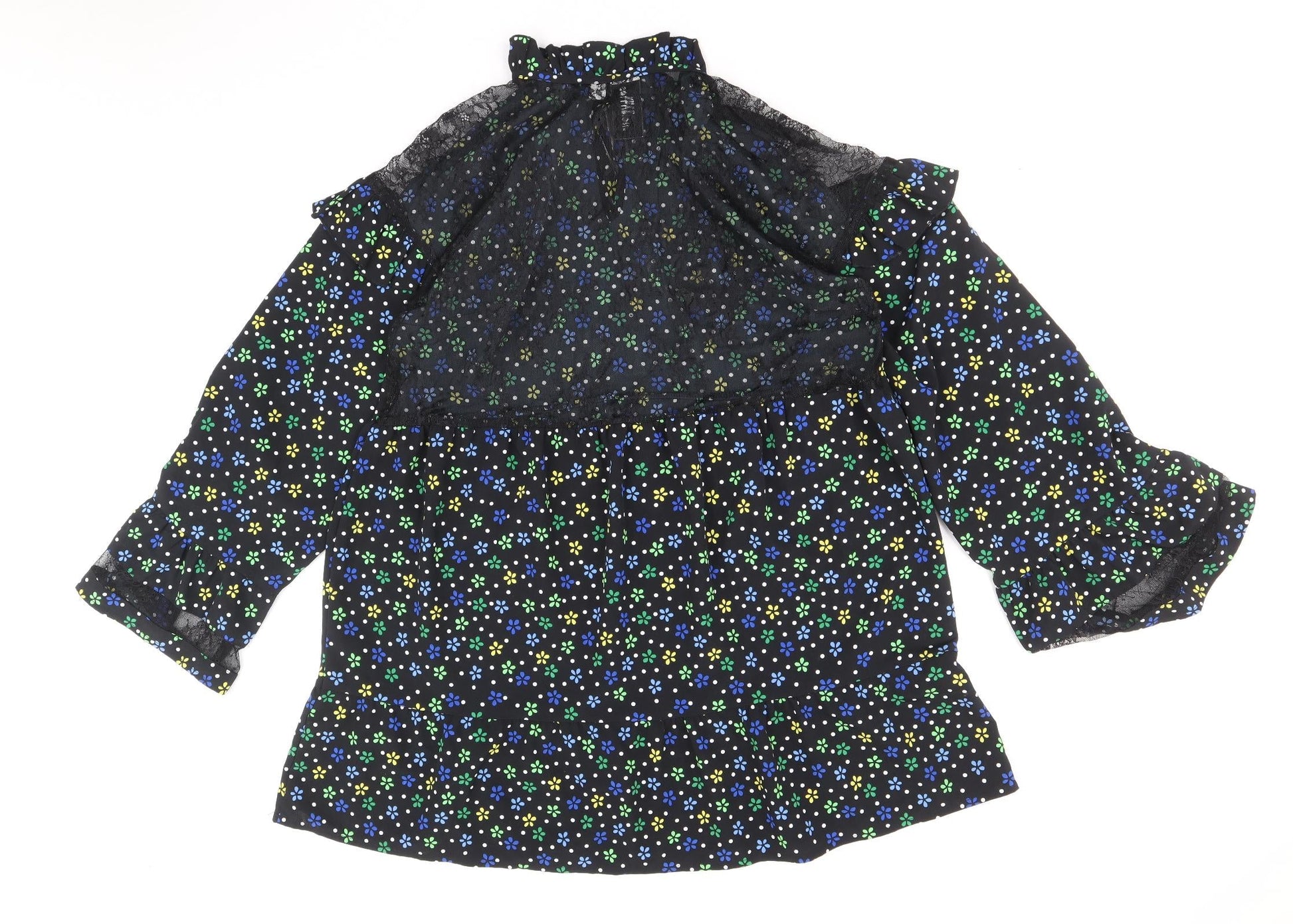 COLLUSION Womens Black Floral Polyester A-Line Size 10 Round Neck Tie