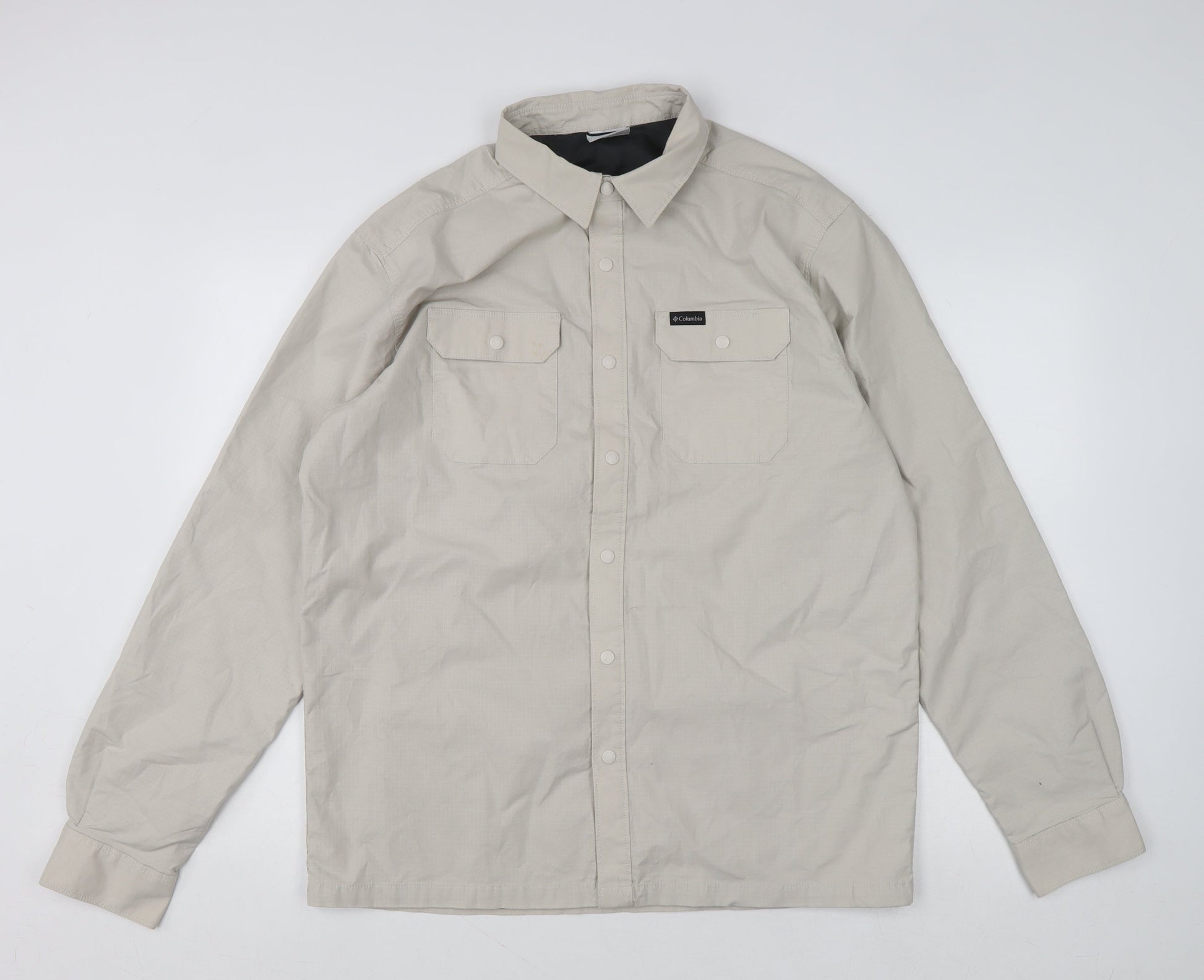 Columbia Men Beige Cotton Blend Long Sleeve Button-Up Outdoor Shirt M