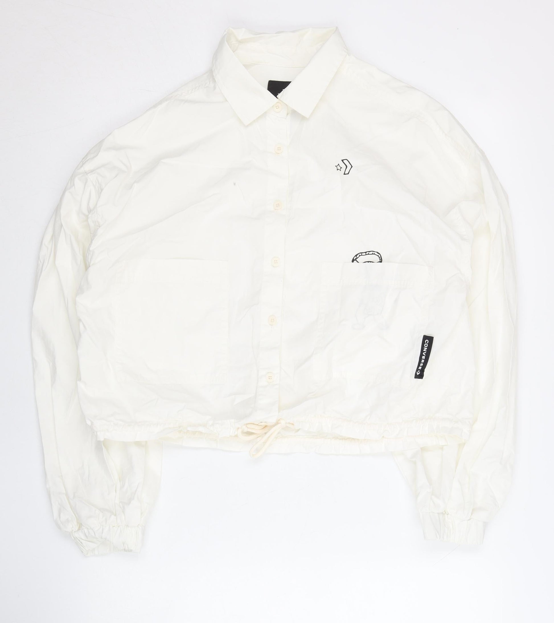 Converse Women’s White Cotton Cropped Jacket Size 12 Collared Casual