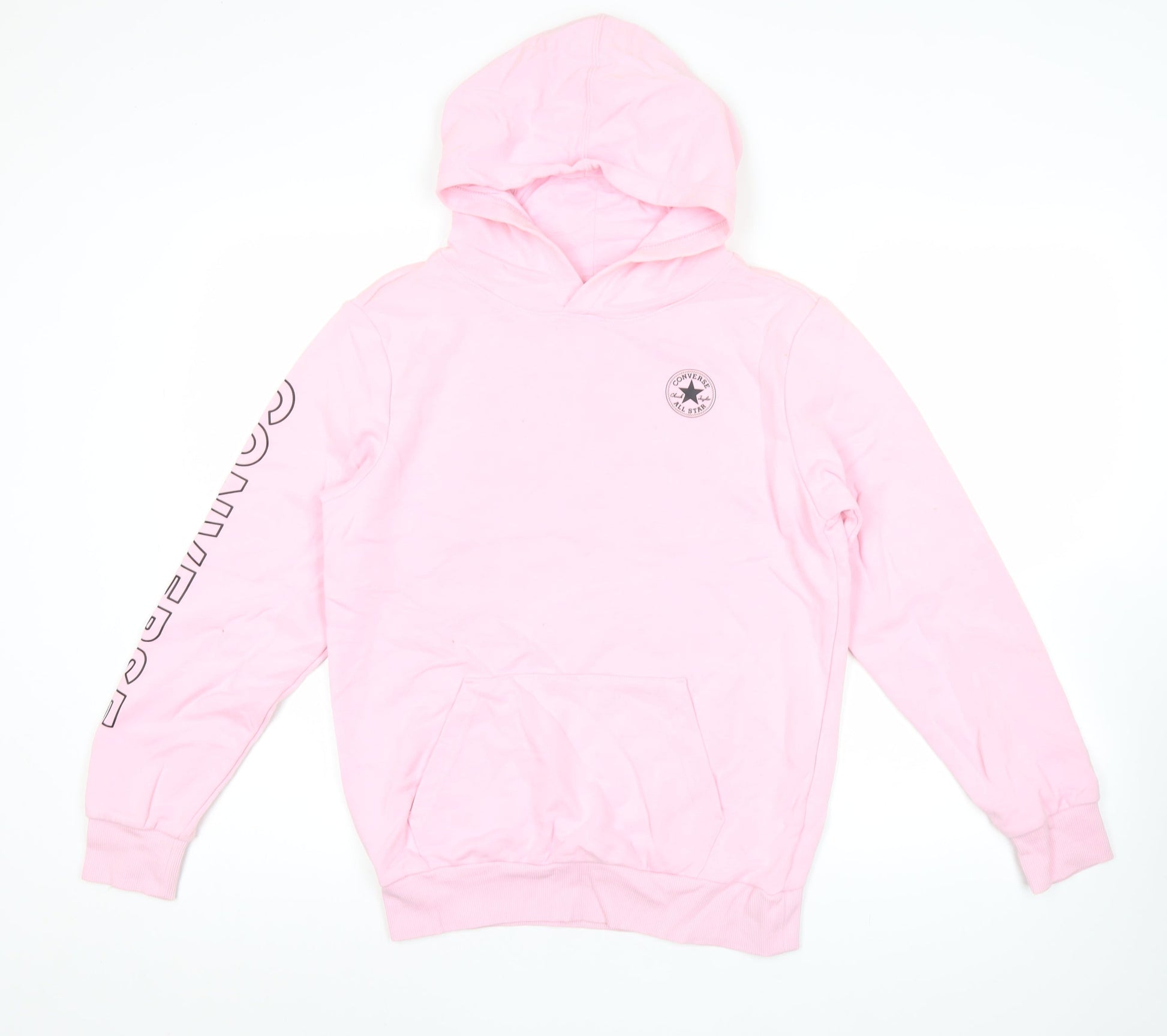 Converse Womens Pink Pullover Hoodie Size M Logo Print Long Sleeve