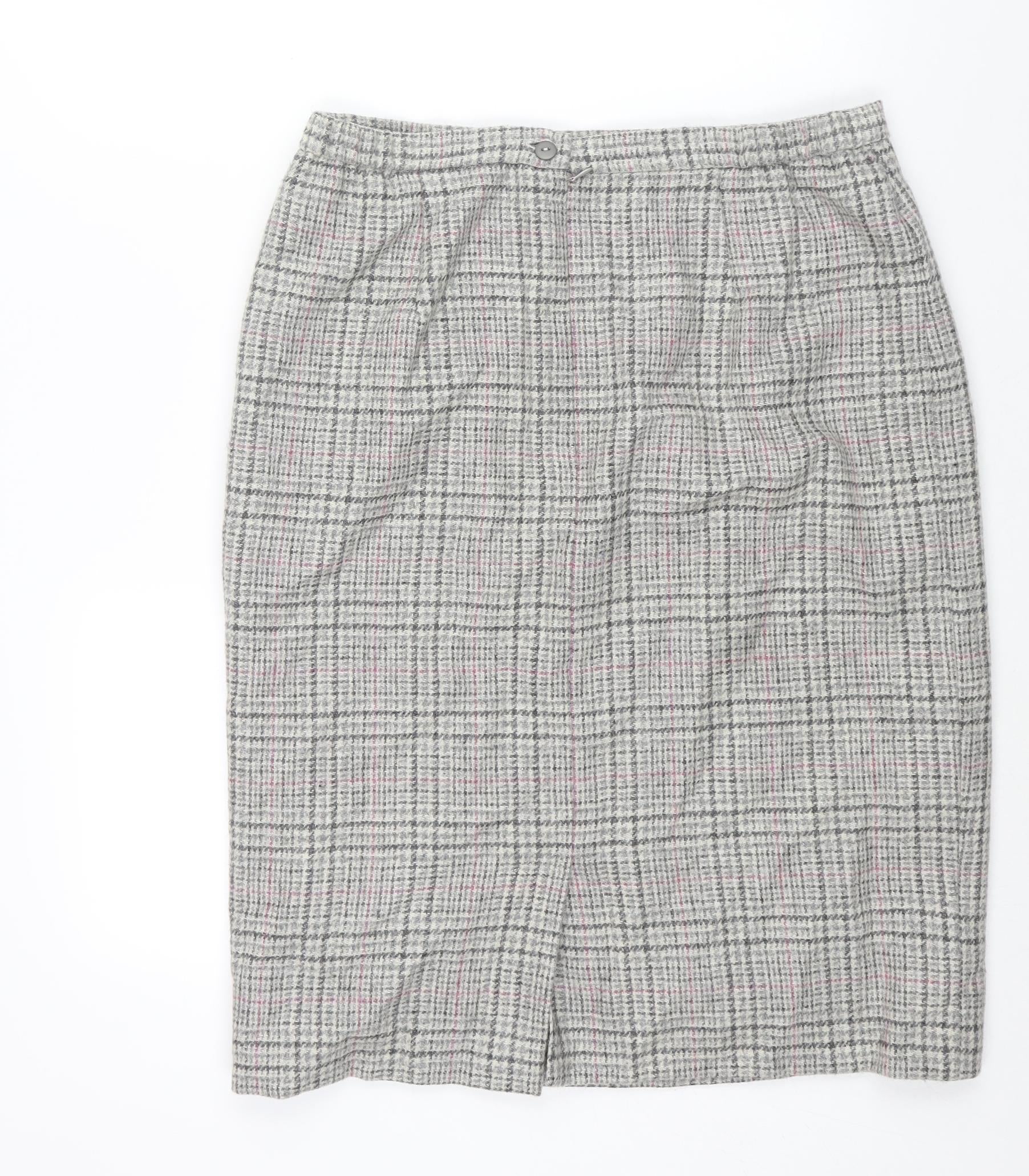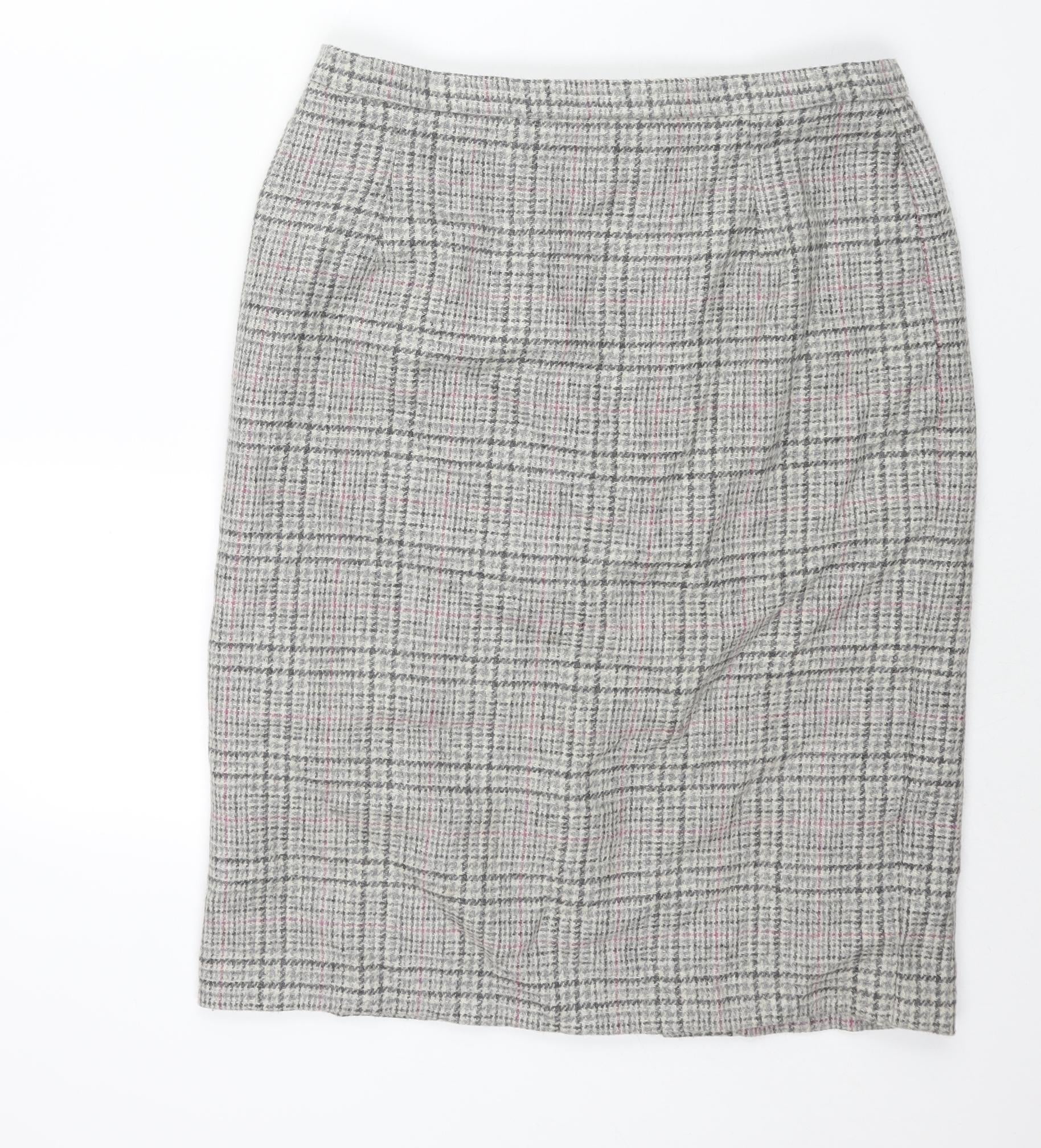 Cotswold Collections Womens Grey Check Wool Straight & Pencil Skirt Size 18 Zip
