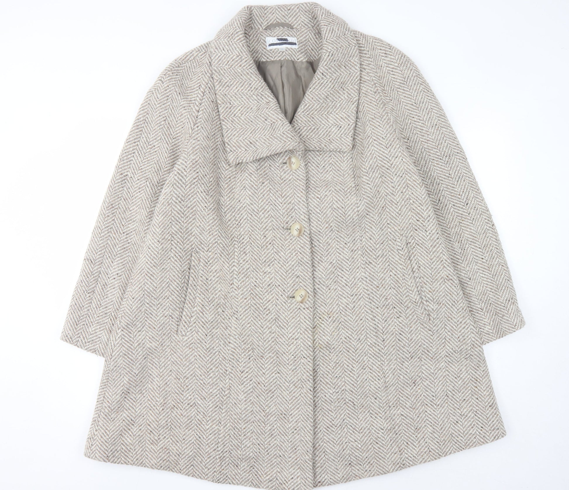 Cotswold Women's Beige Wool Tweed Overcoat Size 14