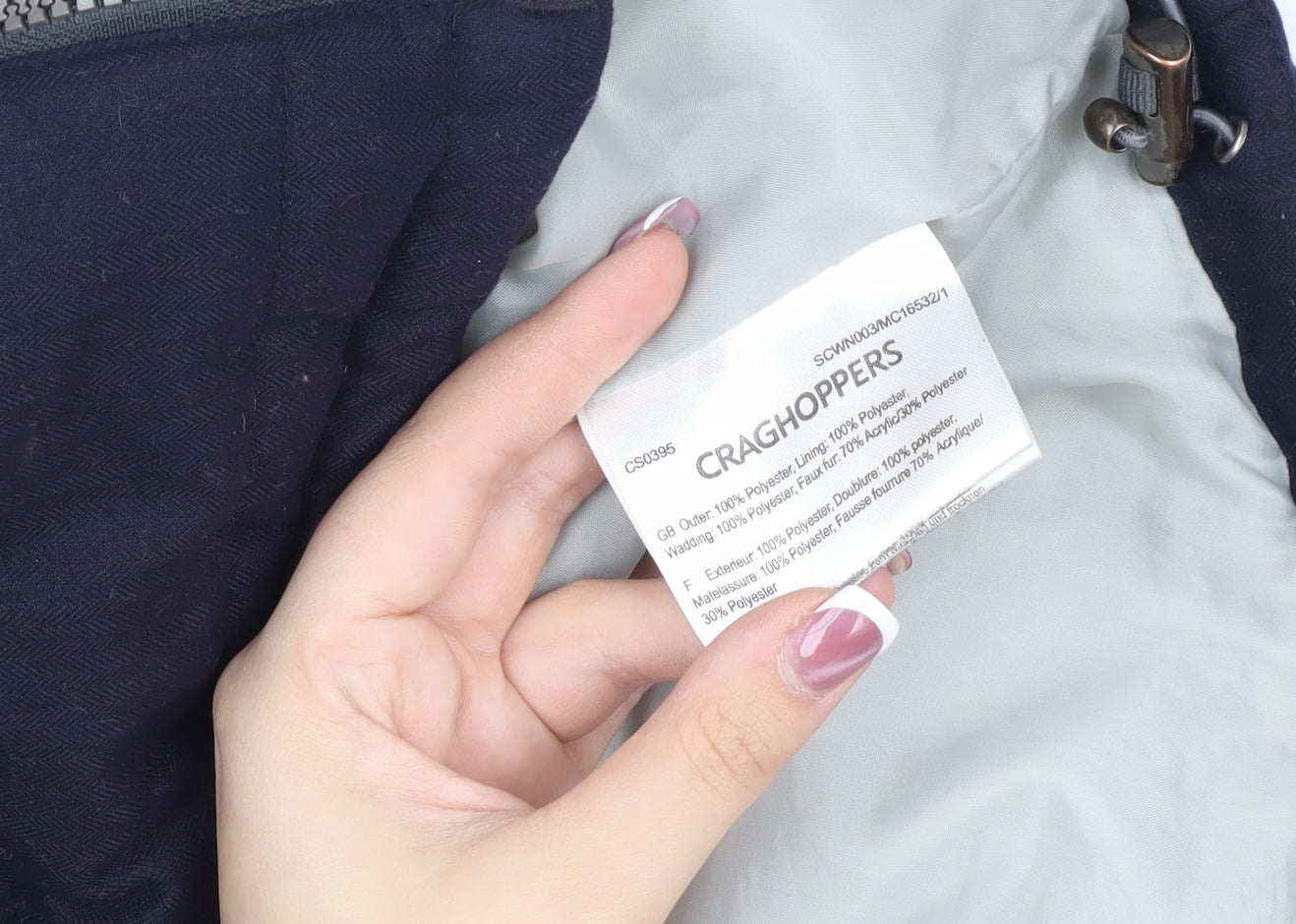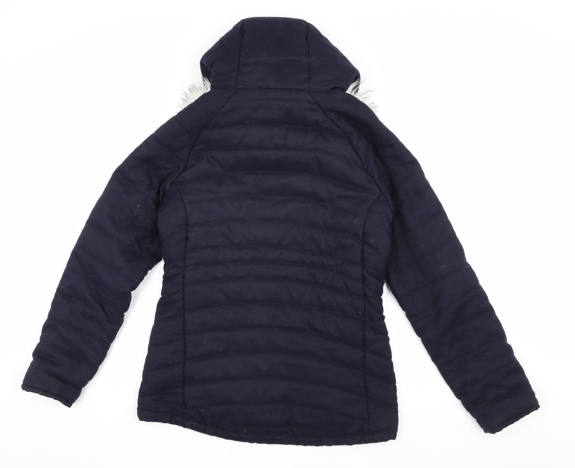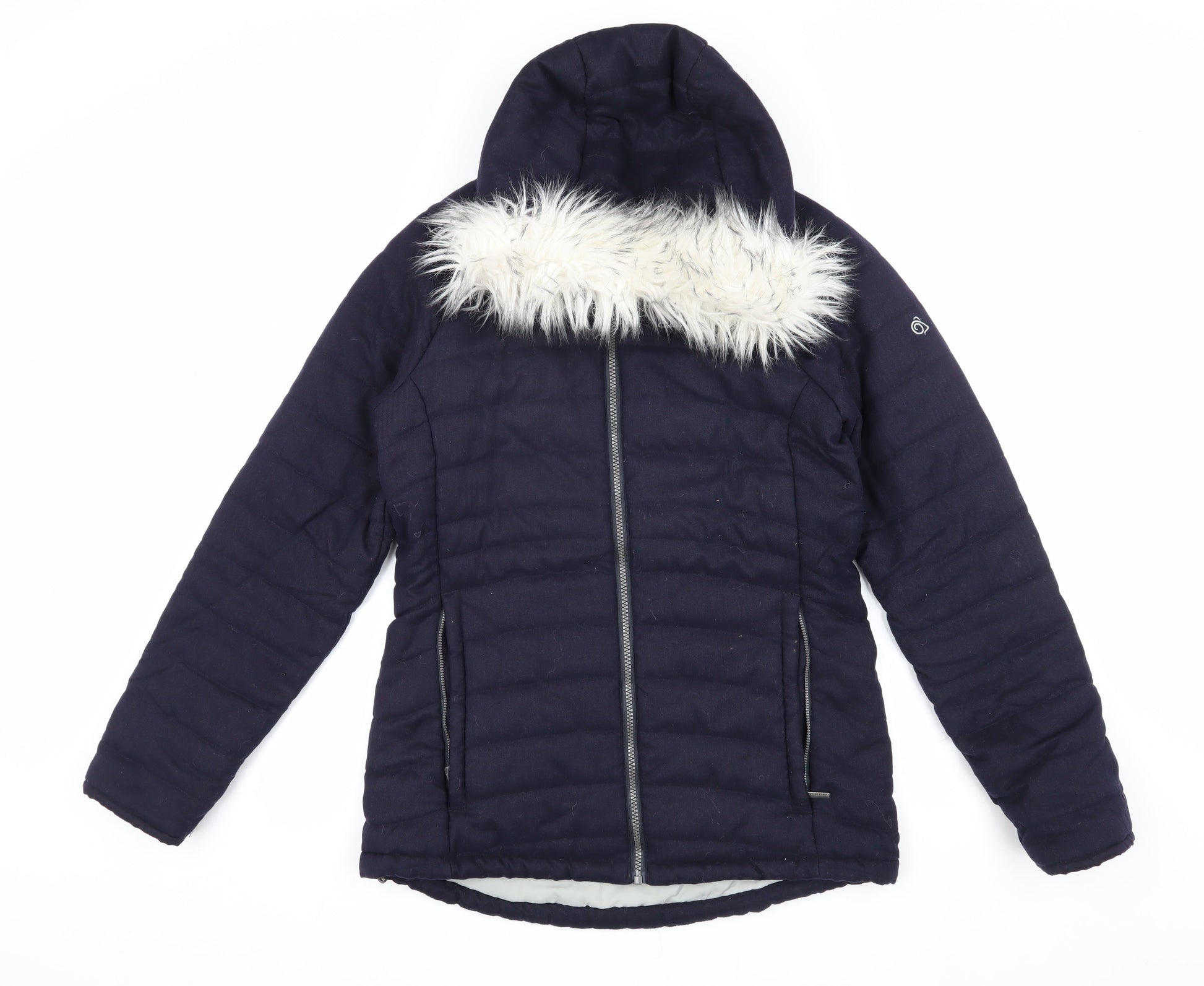 Craghoppers Women's Blue Puffer Jacket Size 10 with Fur Trim