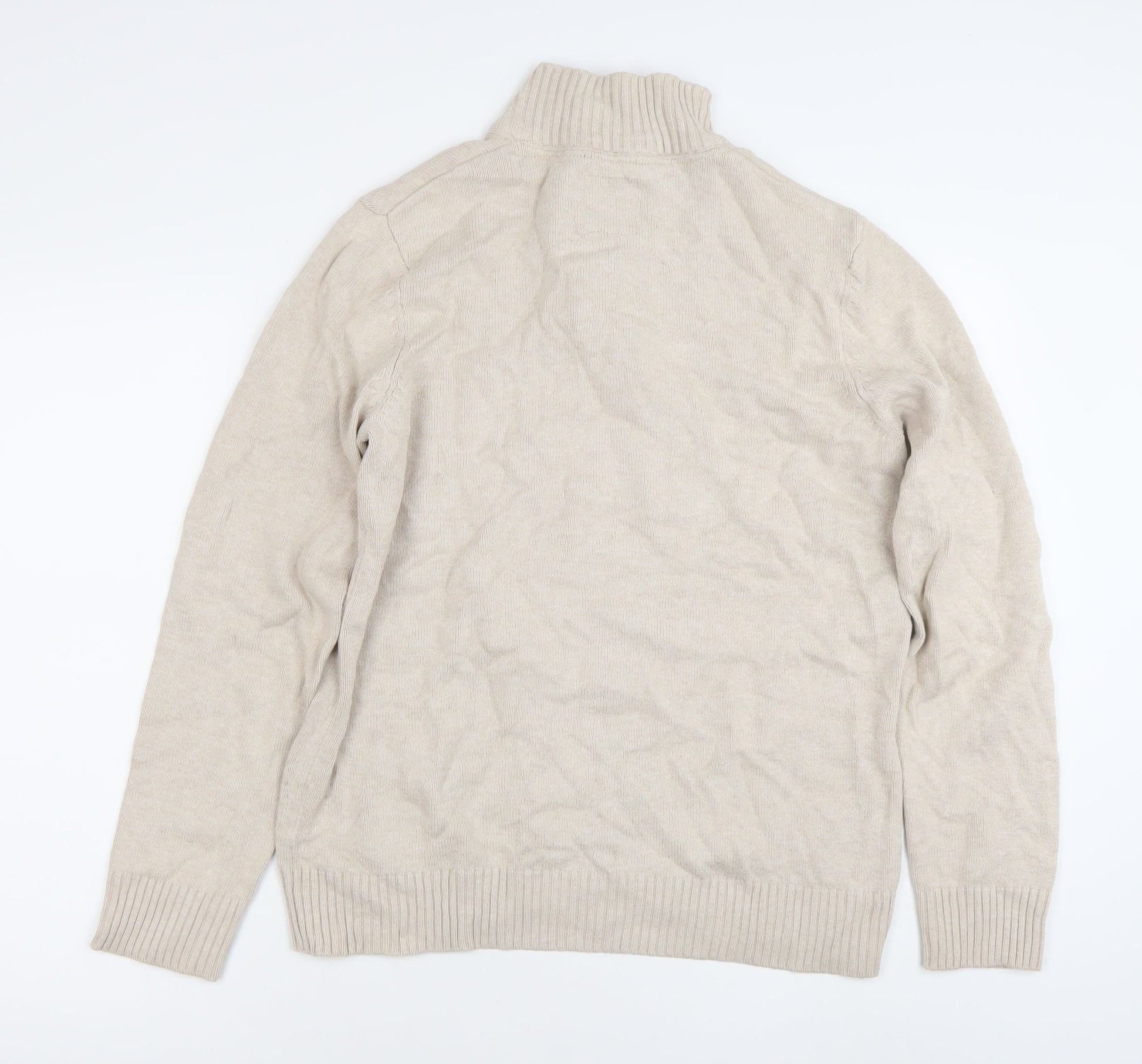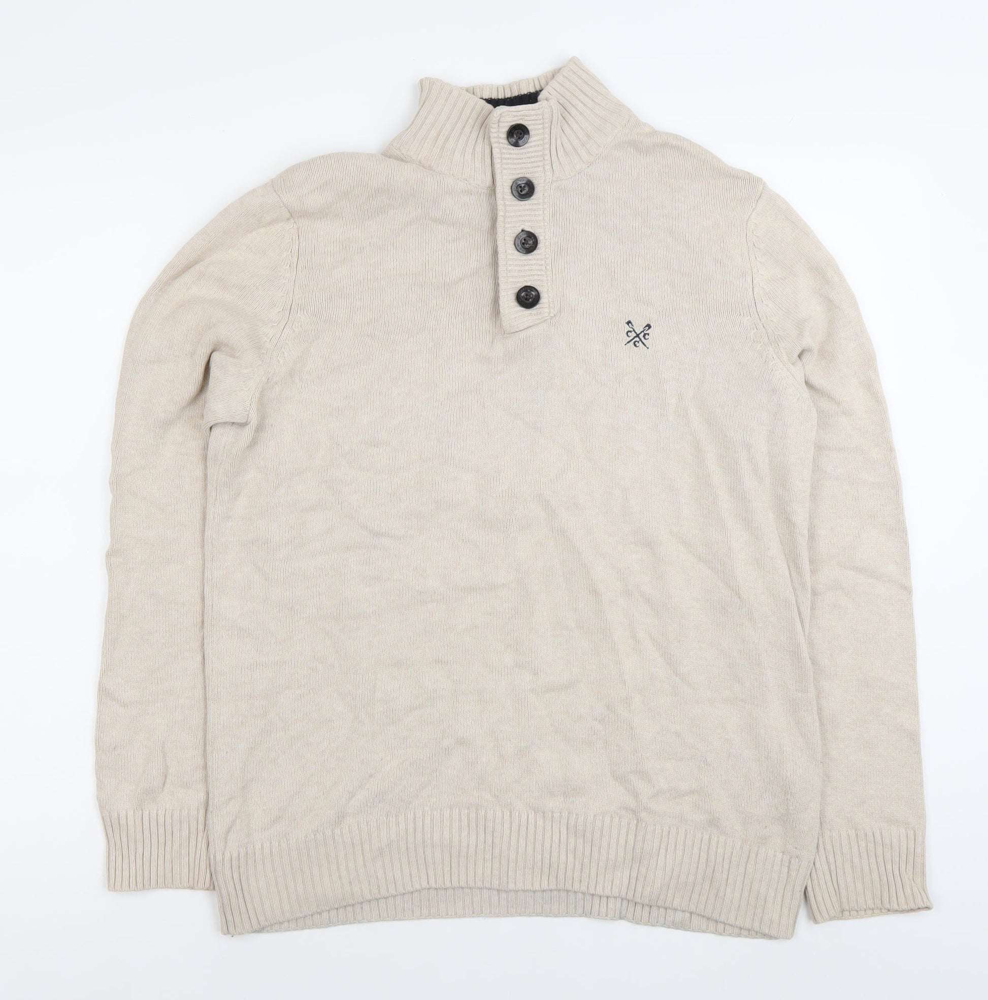 Crew Clothing Co. Men's Beige Cotton Henley Jumper Medium