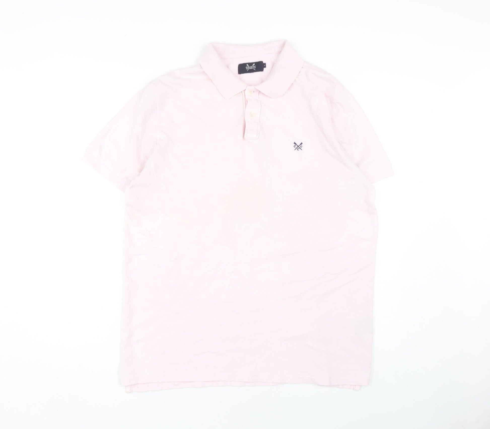 Crew Clothing Co. Men's Pink Polo, Size L, Logo Accent