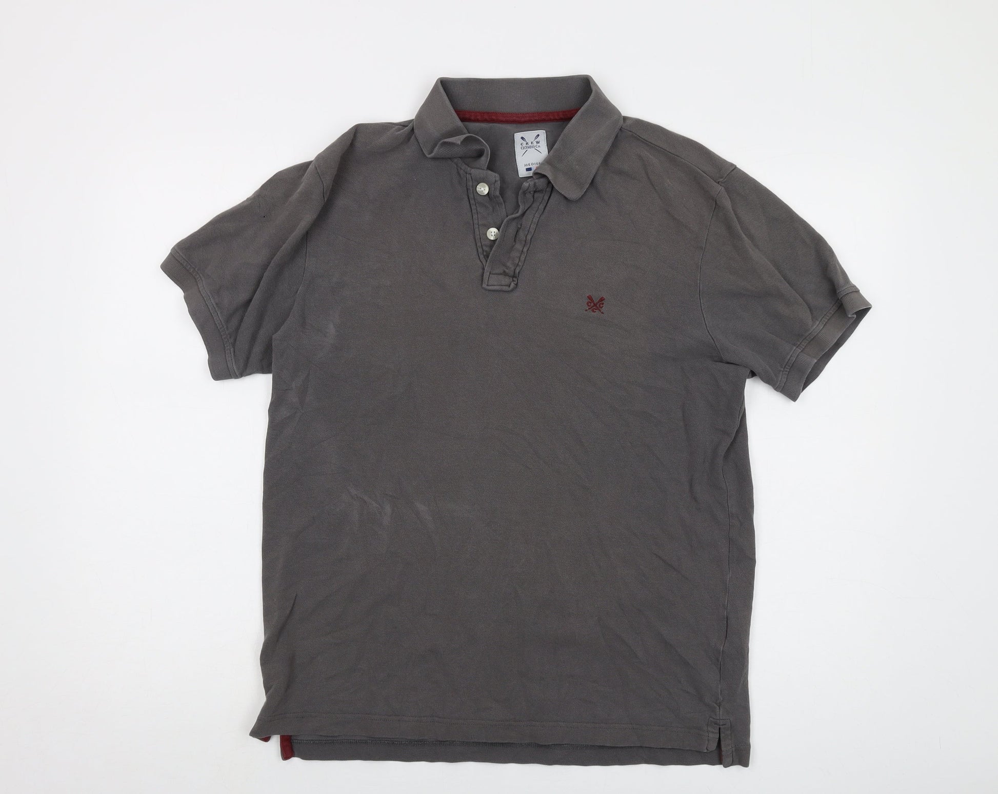 Crew Clothing Mens Grey Cotton Polo Size M Collared Button