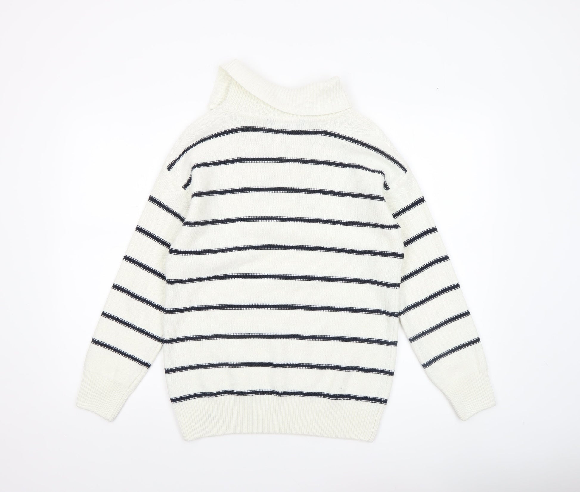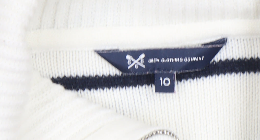 Crew Clothing Women’s White Striped Half Zip Jumper Size 10 Wool Blend