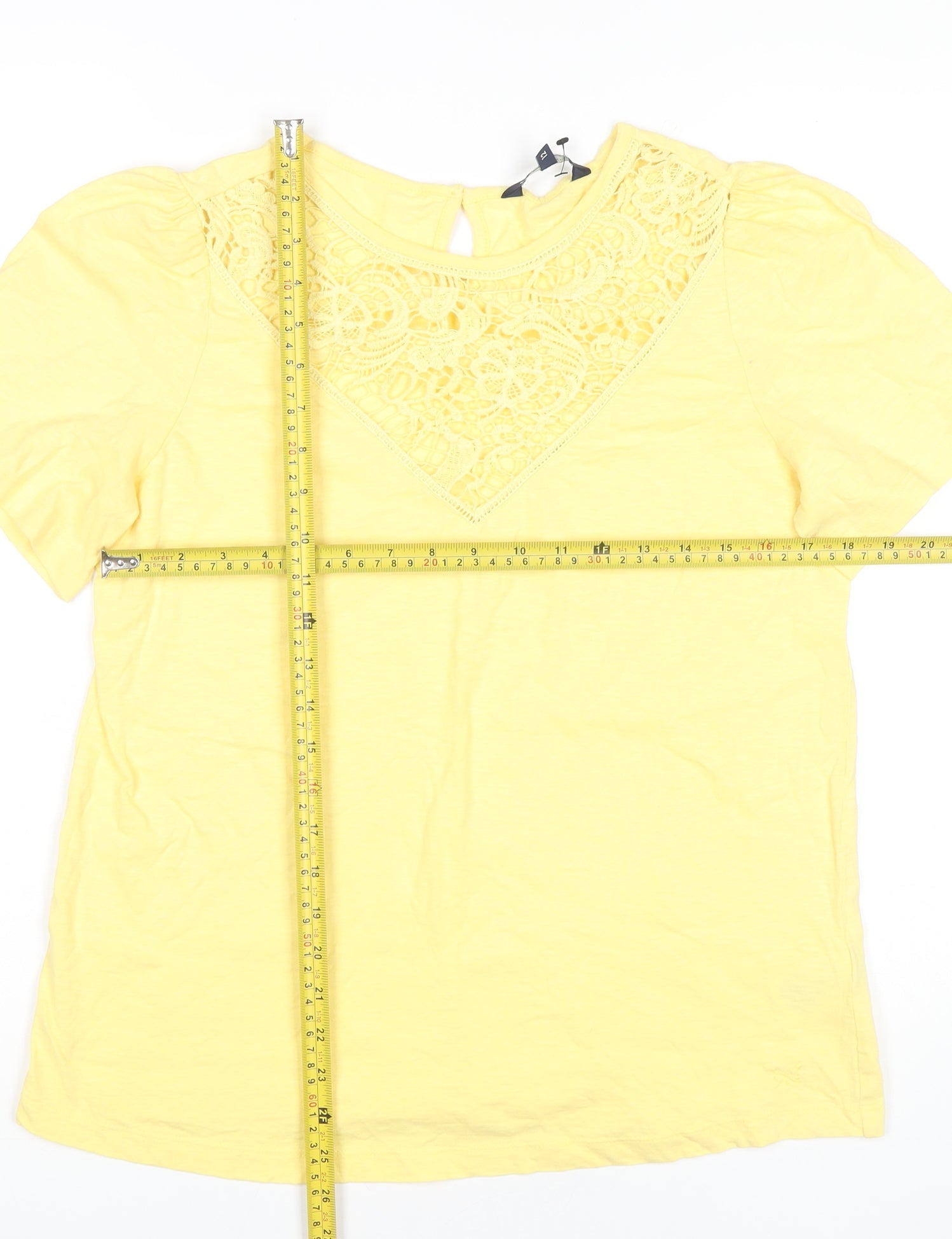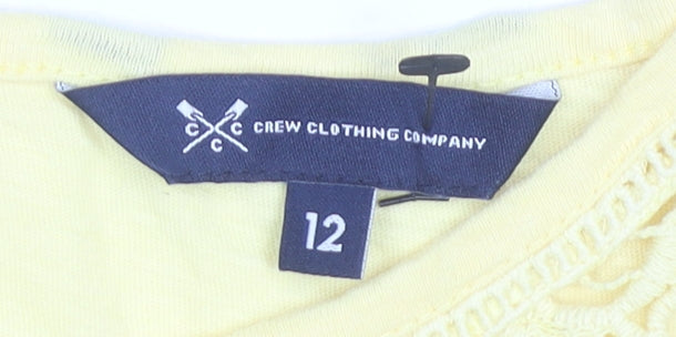 Crew Clothing Women’s Yellow Cotton Crochet Neck T-Shirt Size 12