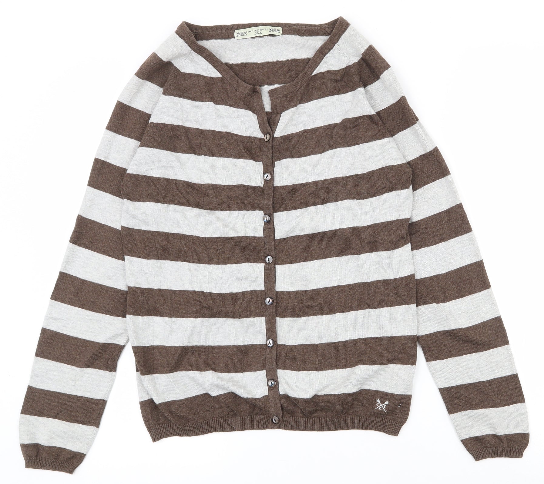 Crew Clothing Womens Brown Scoop Neck Striped 100% Cotton Cardigan Jumper Size 12