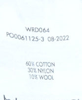 - Material Breakdown: 60% Cotton 30% Nylon 10% Wool