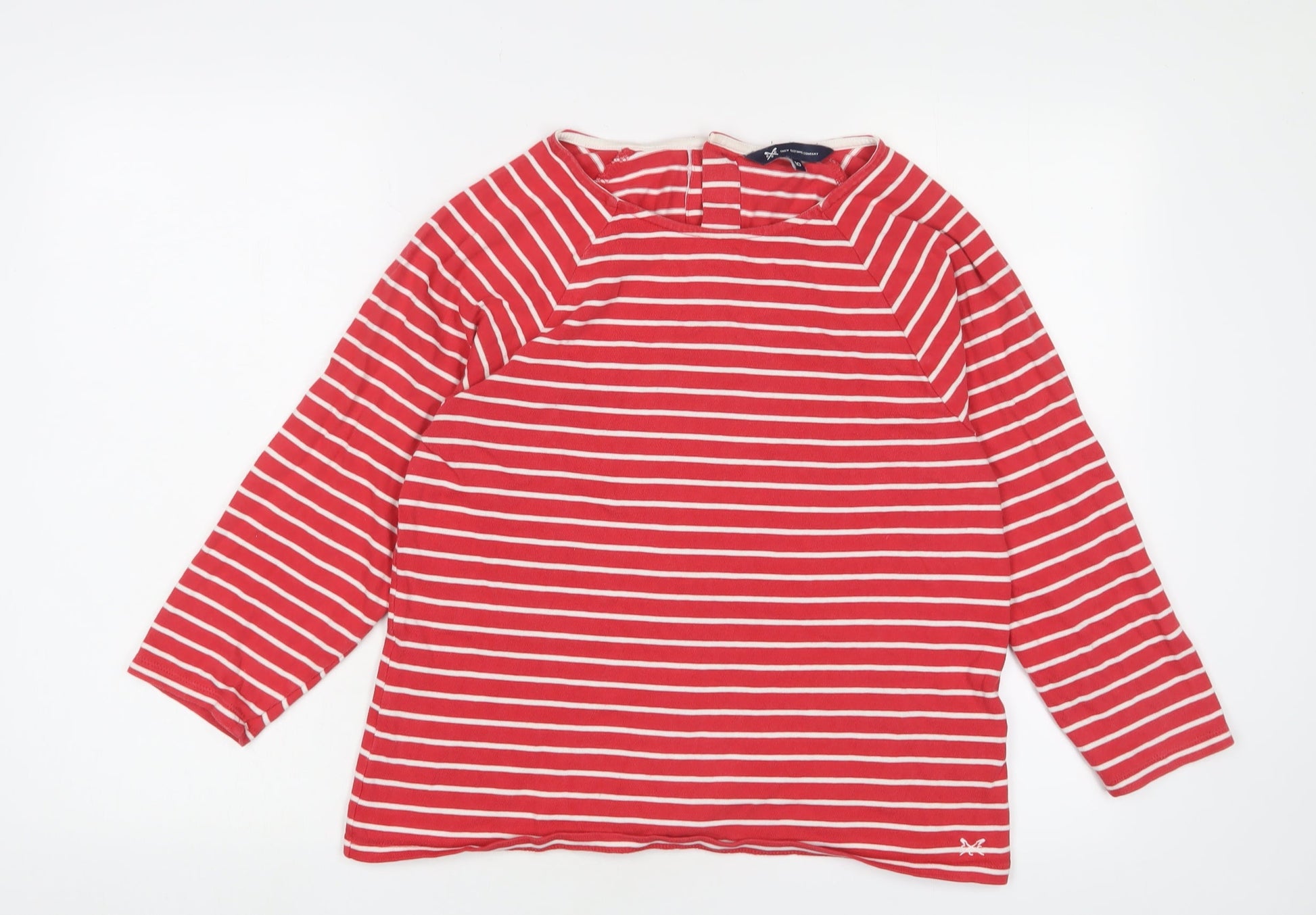 Crew Clothing Womens Red Striped Cotton Basic T-Shirt Size 10 Boat Neck - Logo, Embroidered