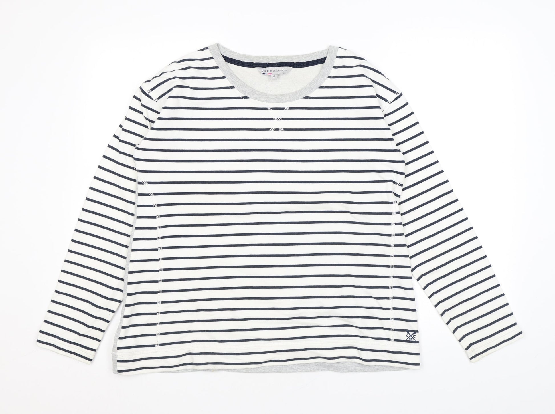 Crew Clothing Womens White Striped Cotton Basic T-Shirt Size 12 Round Neck