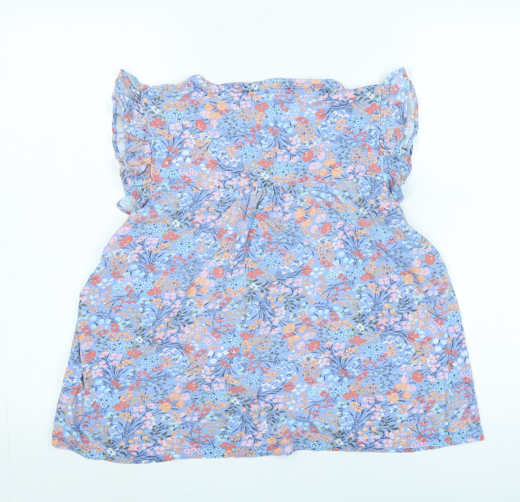 Crewe clothing Co Womens Blue Floral Cotton Basic Blouse Size 12 Crew Neck - Logo
