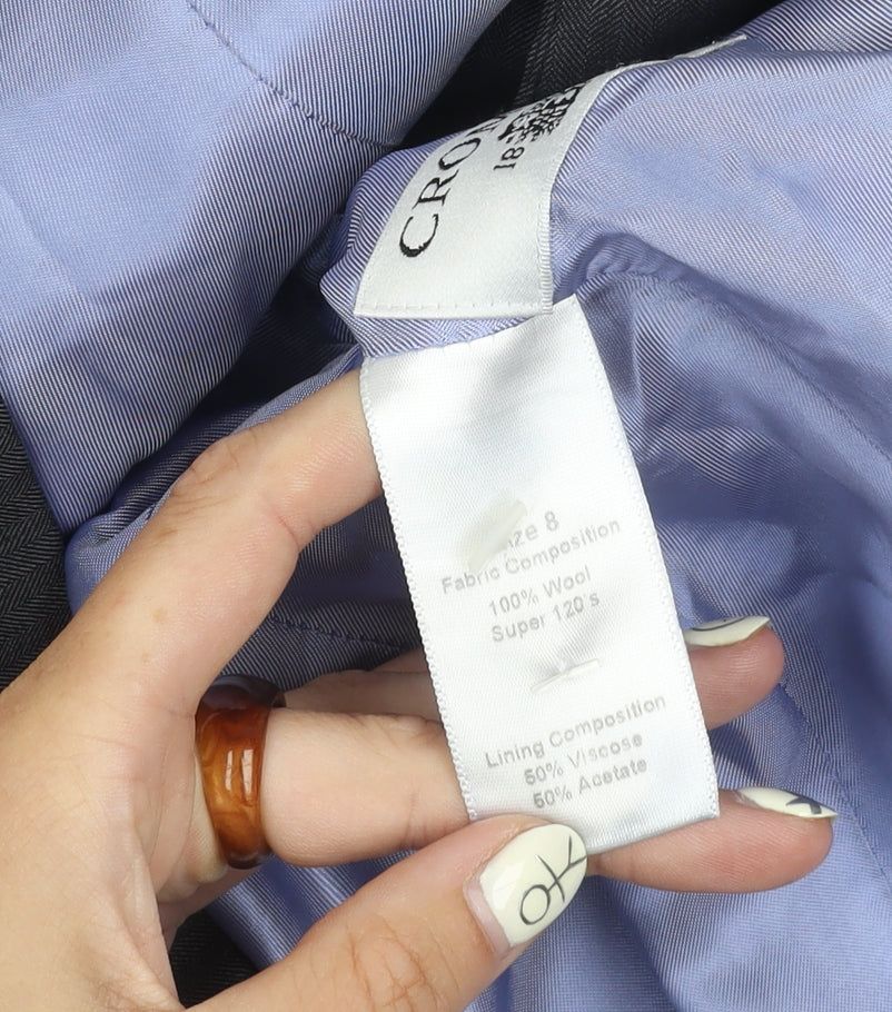 Crombie Womens Black Herringbone Suit Jacket Size 8