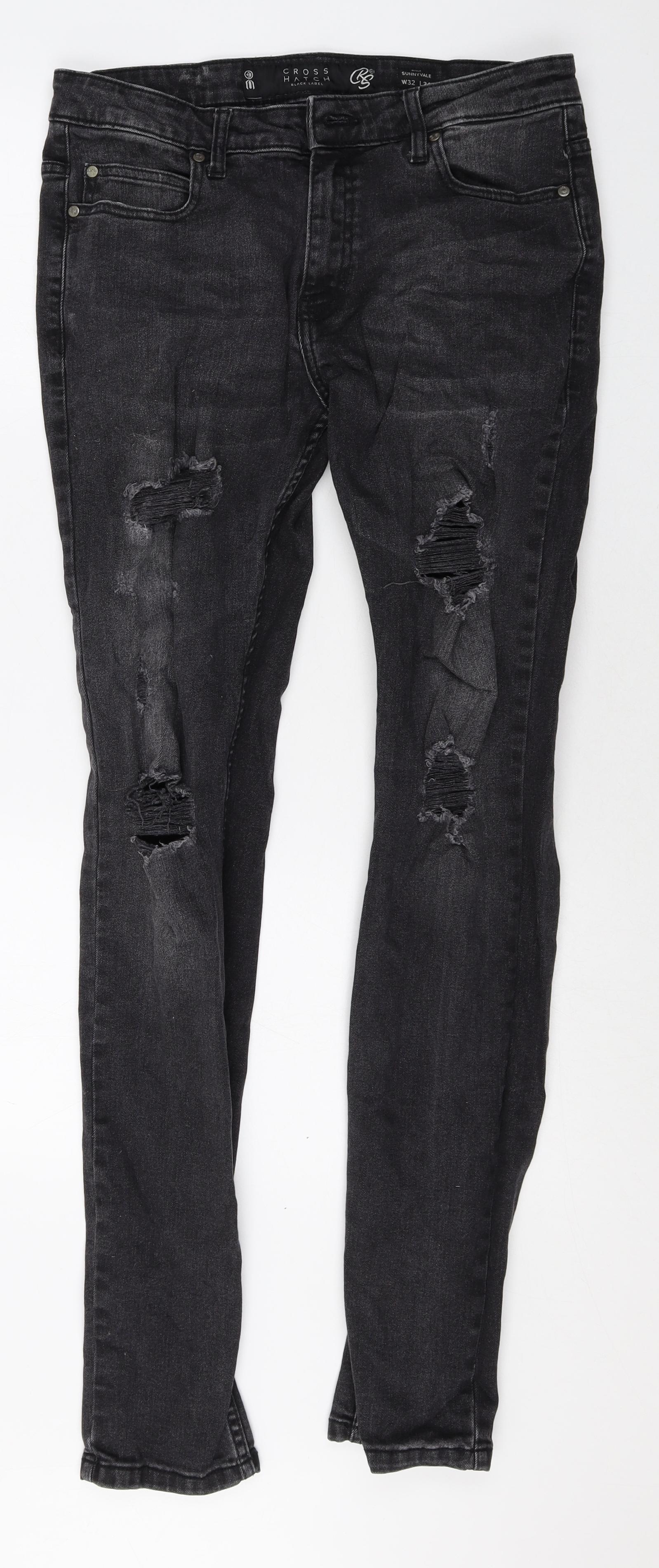 Crosshatch Mens Black Cotton Skinny Jeans Size 32 in Regular Zip