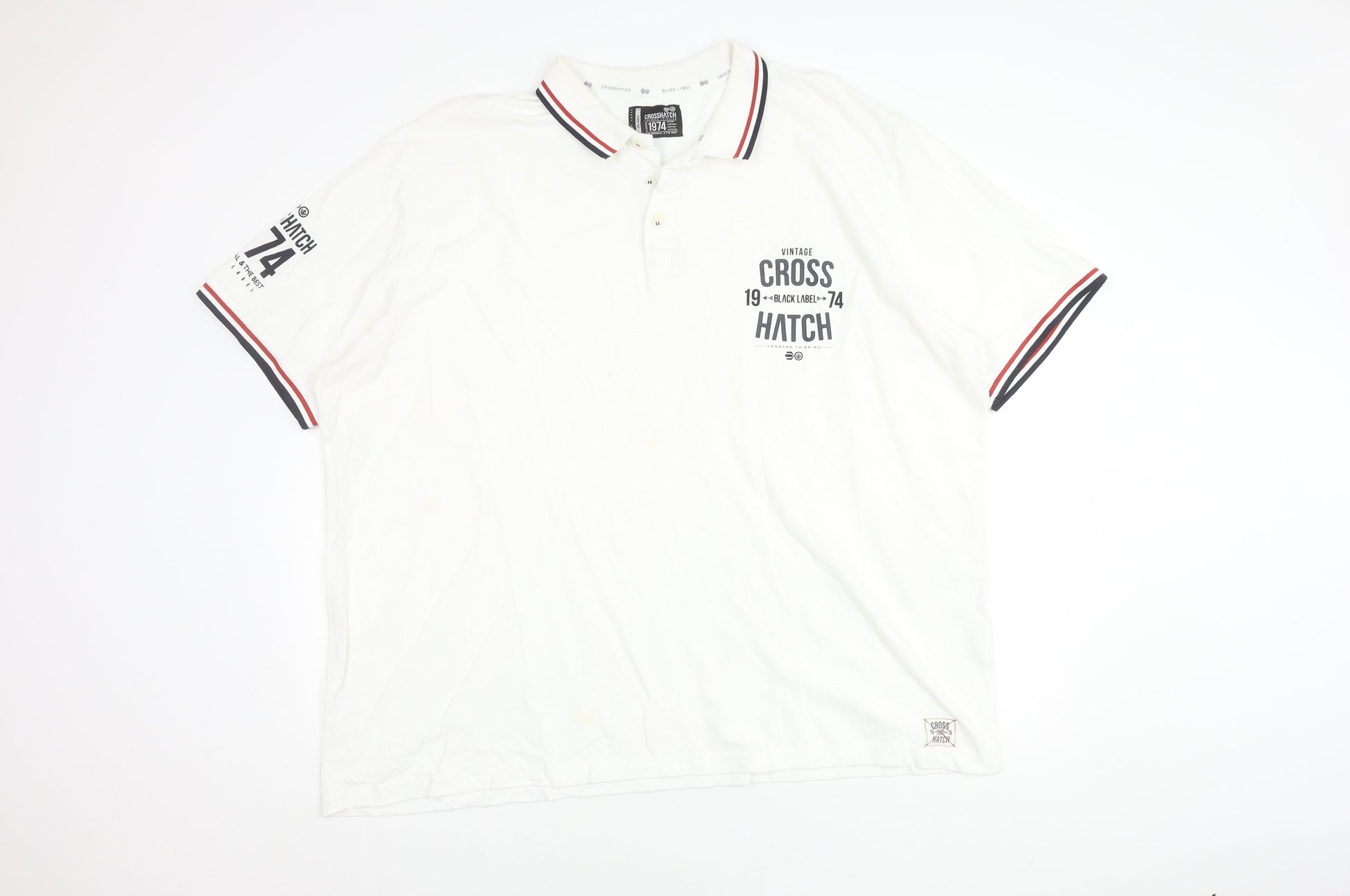 Crosshatch Men's White Polo Shirt 3XL Vintage Retro