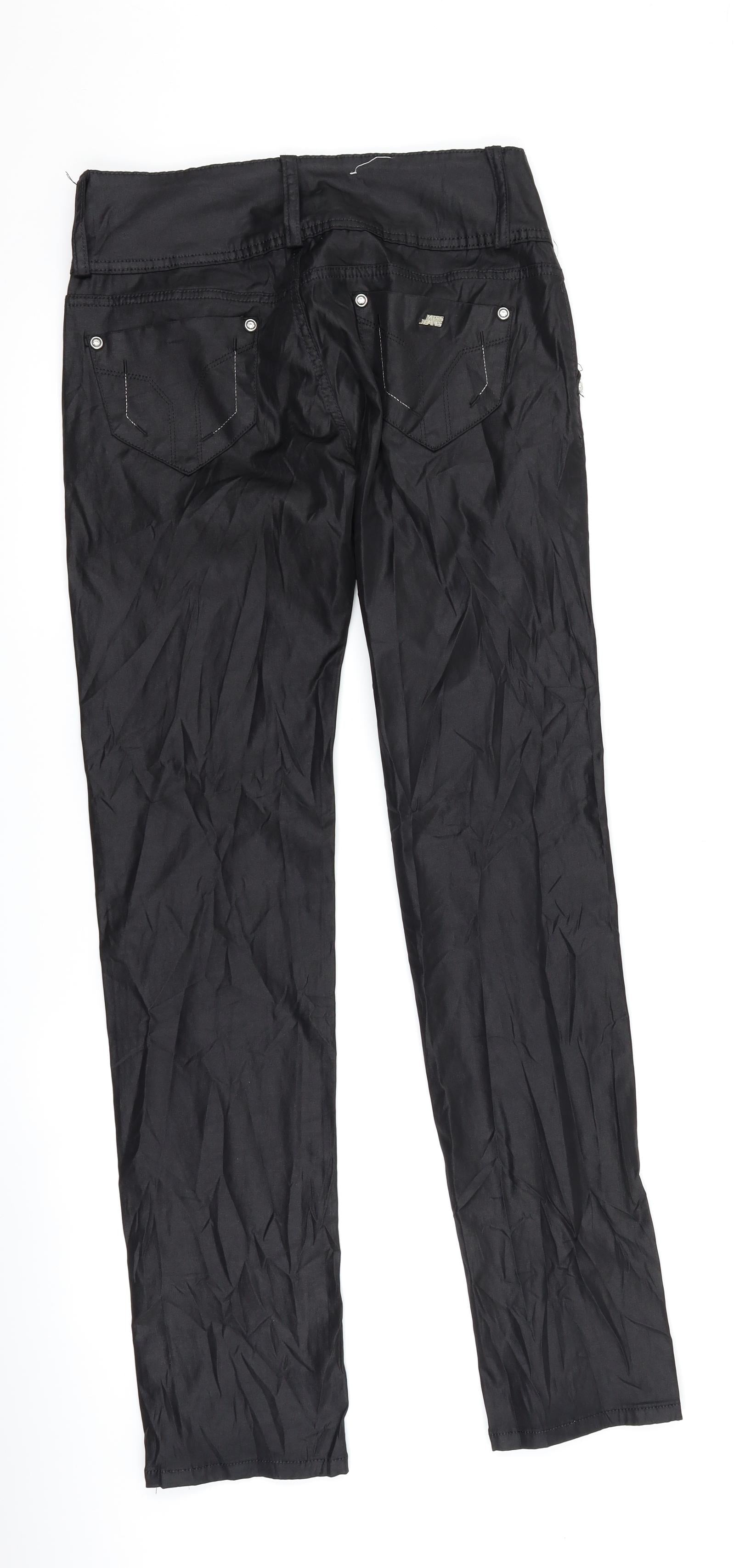 CTM moda Womens Black Trousers Size 29 in L30 in - Wet Look