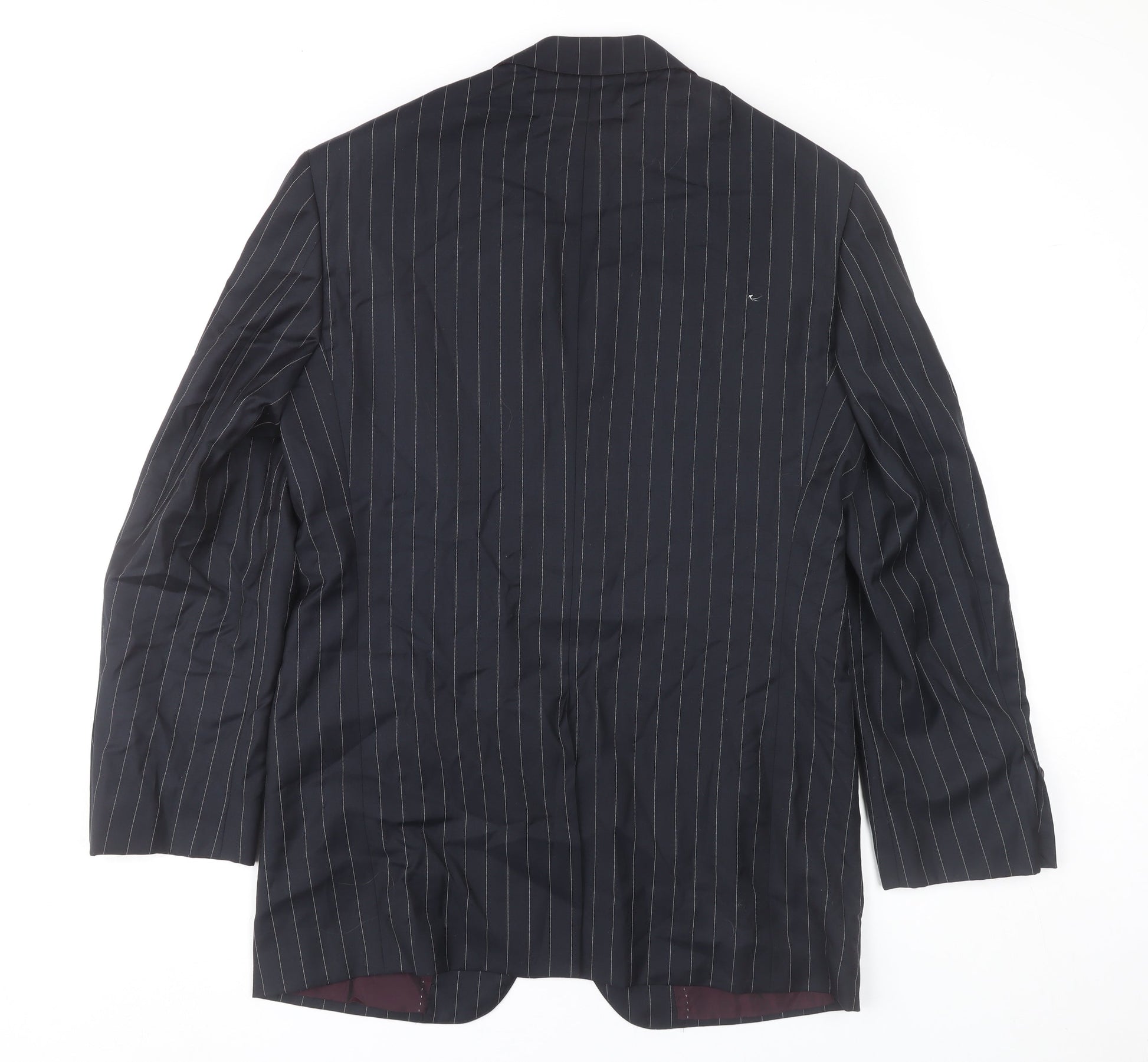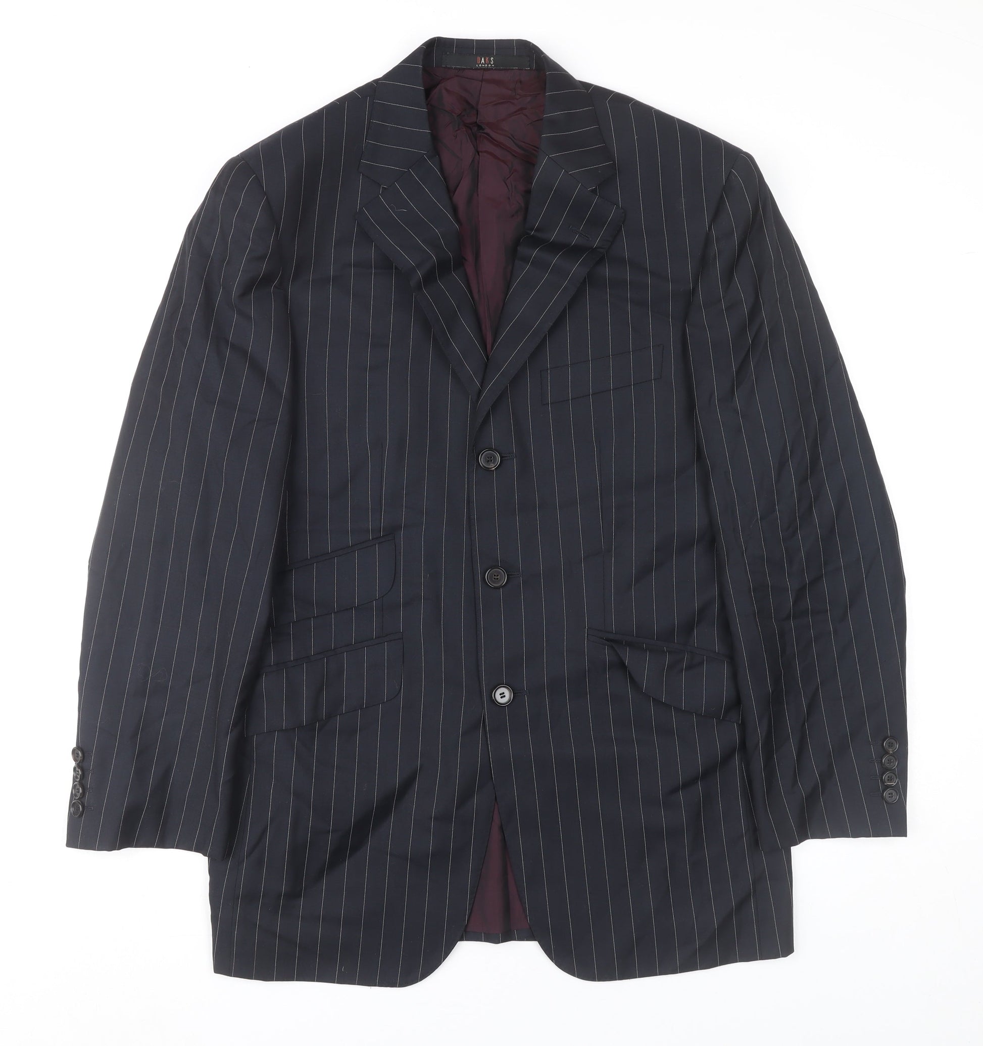 DAKS Men Blue Pinstripe Wool Blazer Jacket 46R Classic Formal