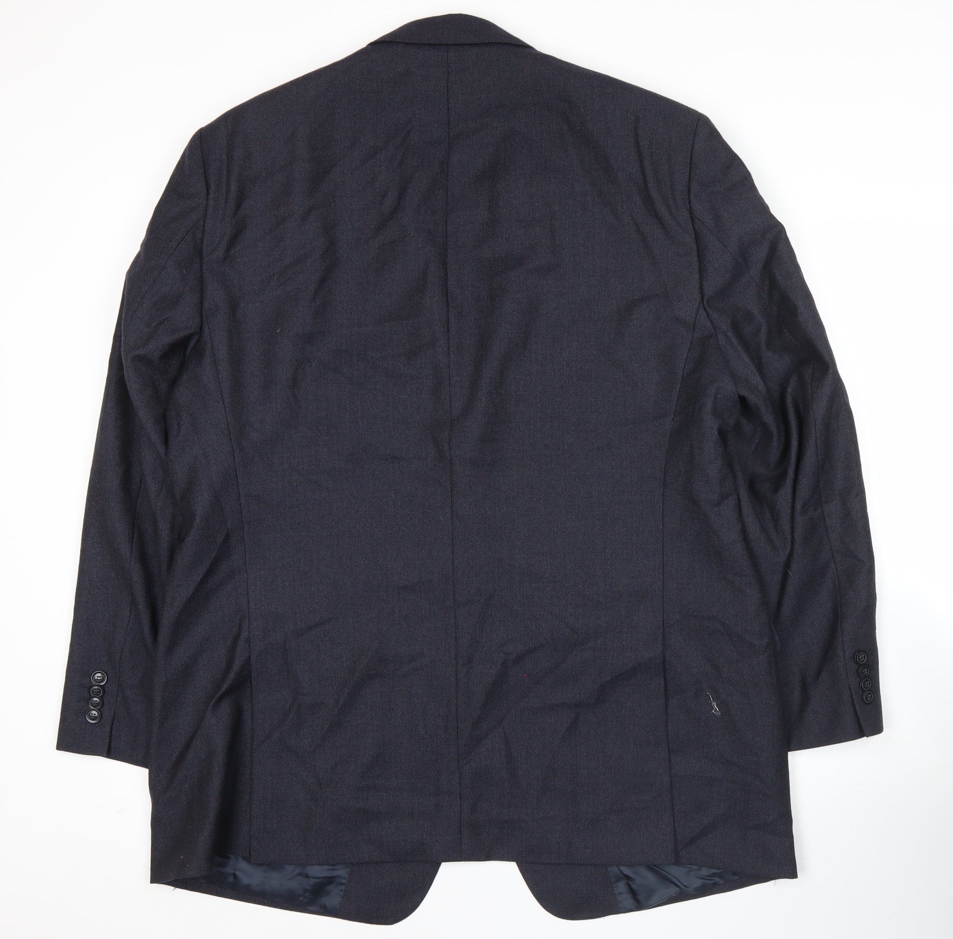 Daks Mens Blue Wool Suit Jacket 48R Classic Two Button Notch Lapel