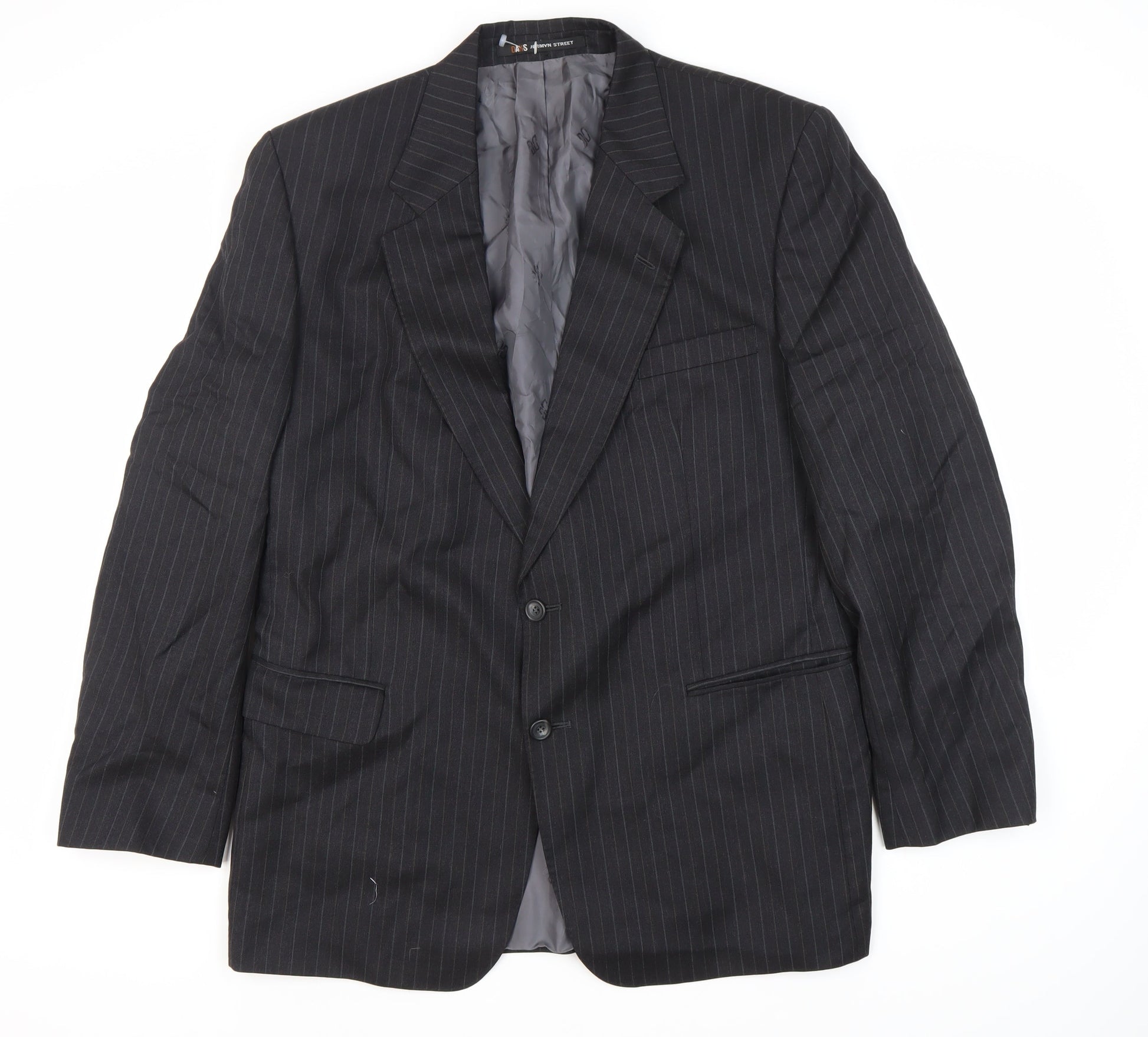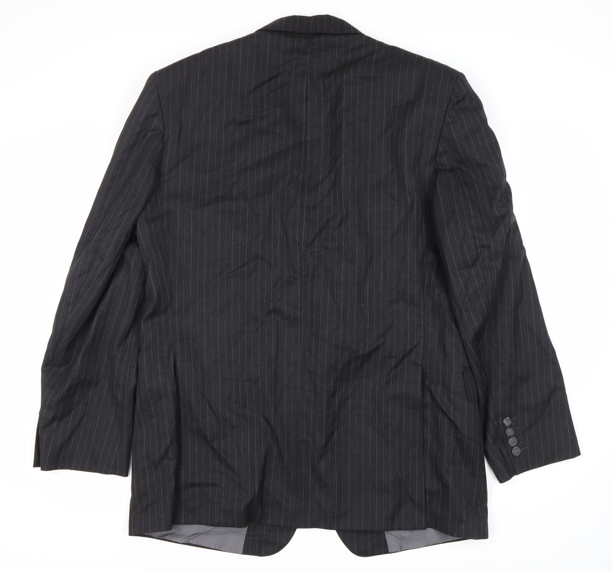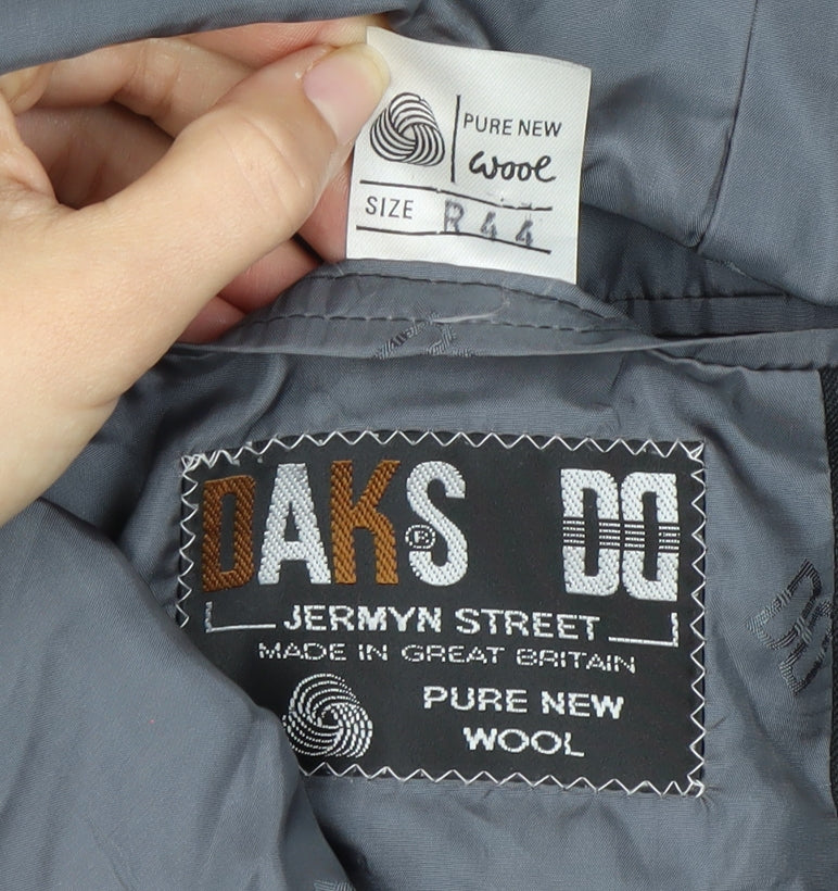 Daks Men's Grey Wool Blazer, Size 44R Striped, Formal