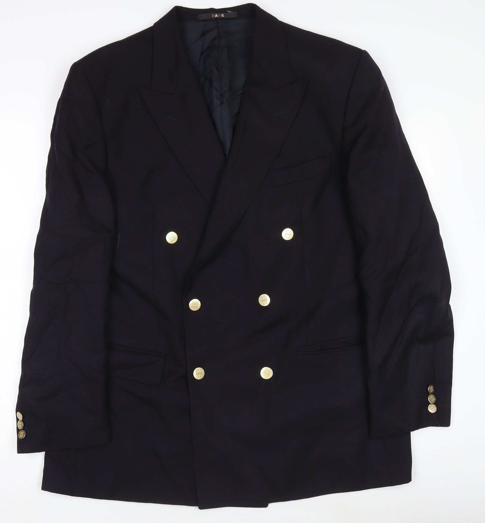 DAKS Mens Navy Wool Double-Breasted Blazer Jacket 40R Classic Style