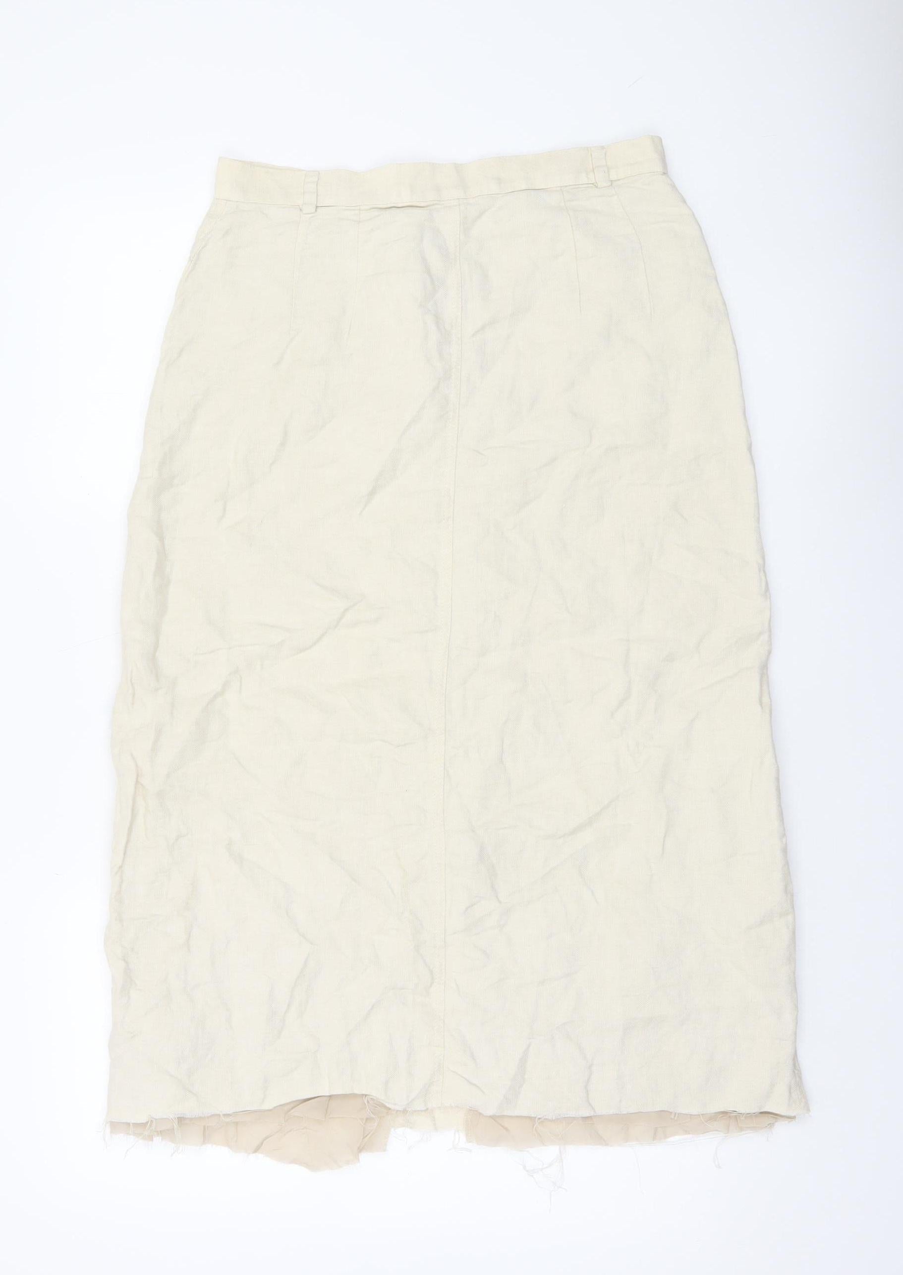 DAKS Women Beige Linen Midi Pencil Skirt Size 14 Workwear