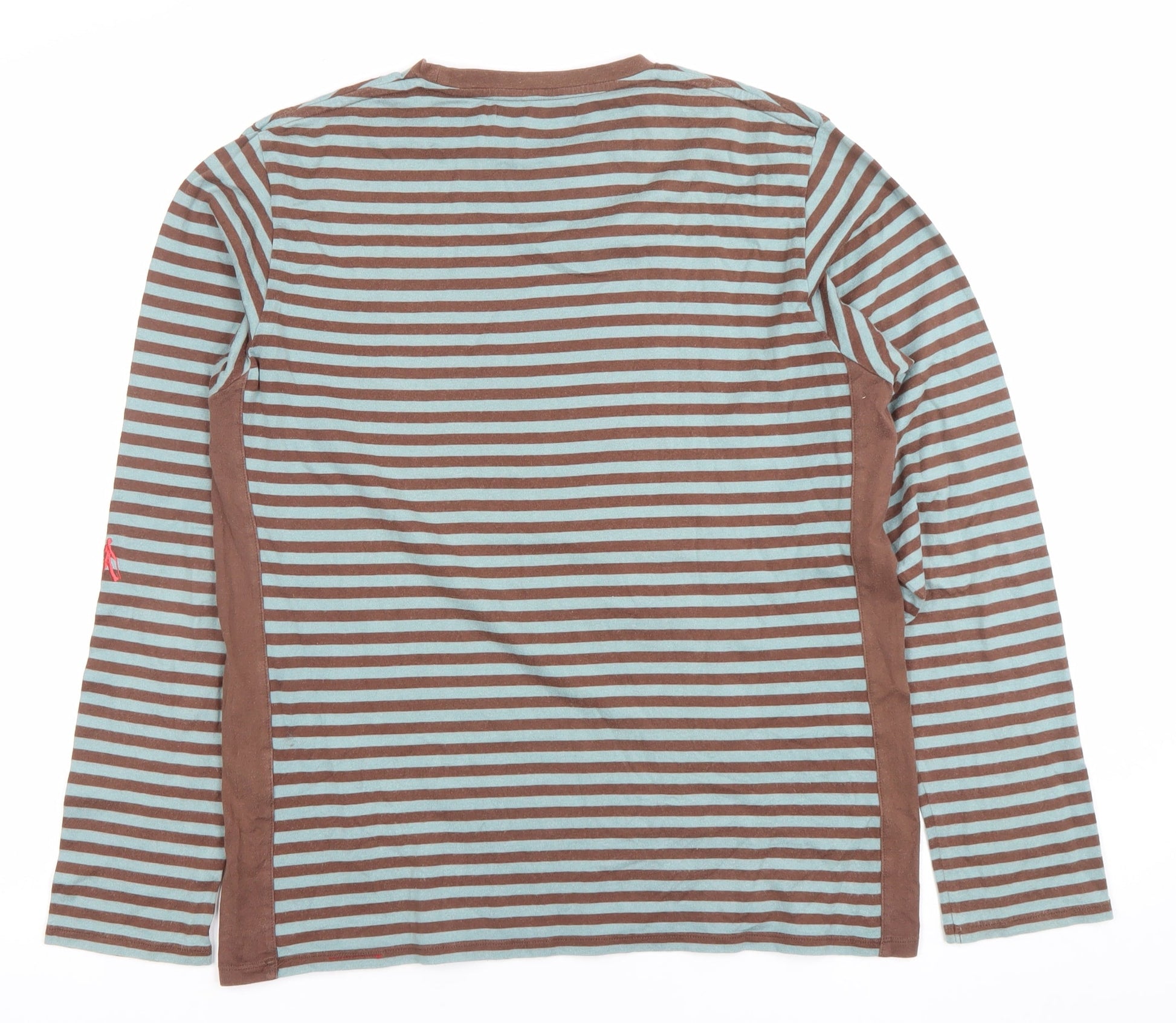 DAKS Women’s Brown Blue Striped Cotton Long Sleeve T-Shirt L