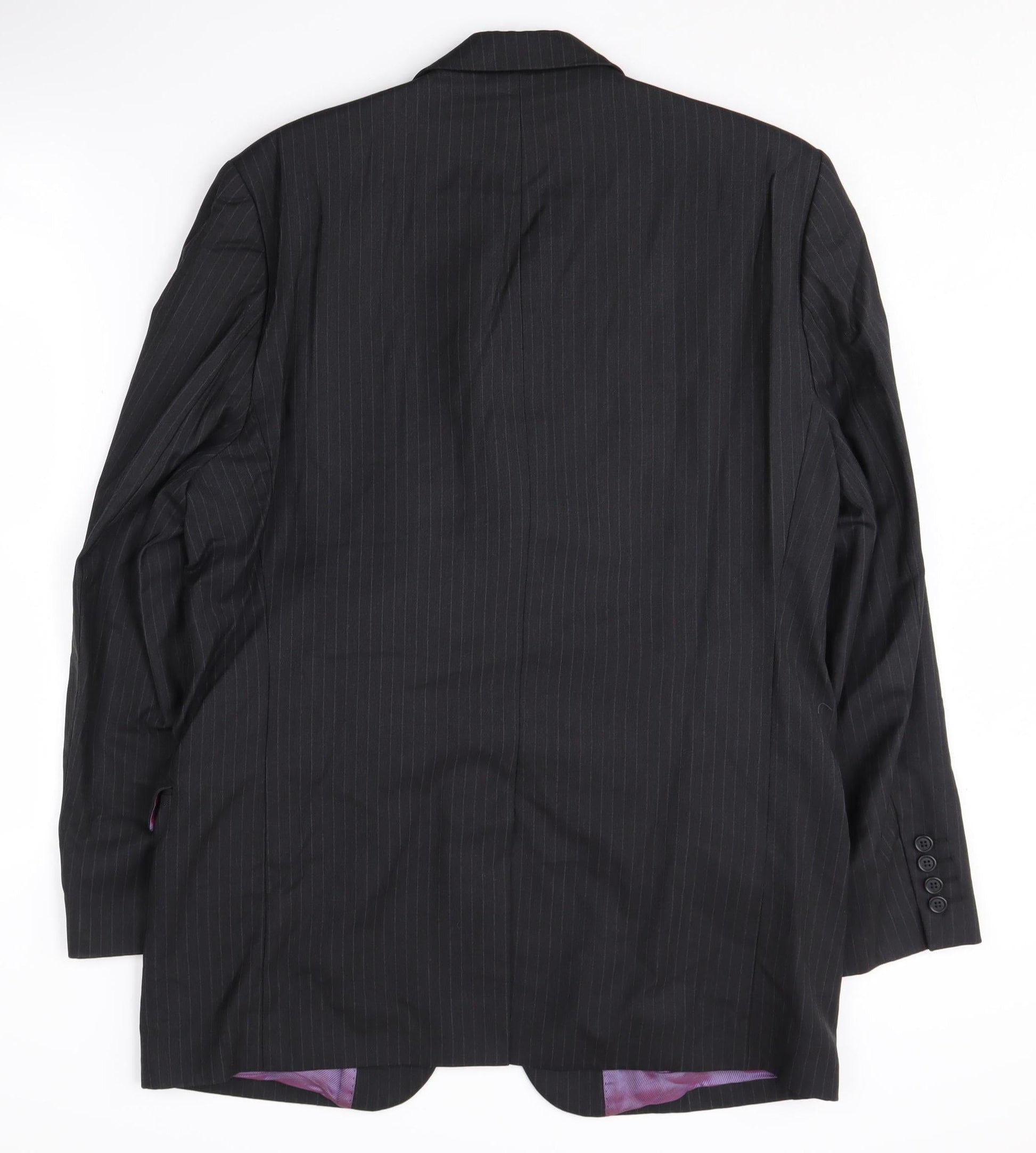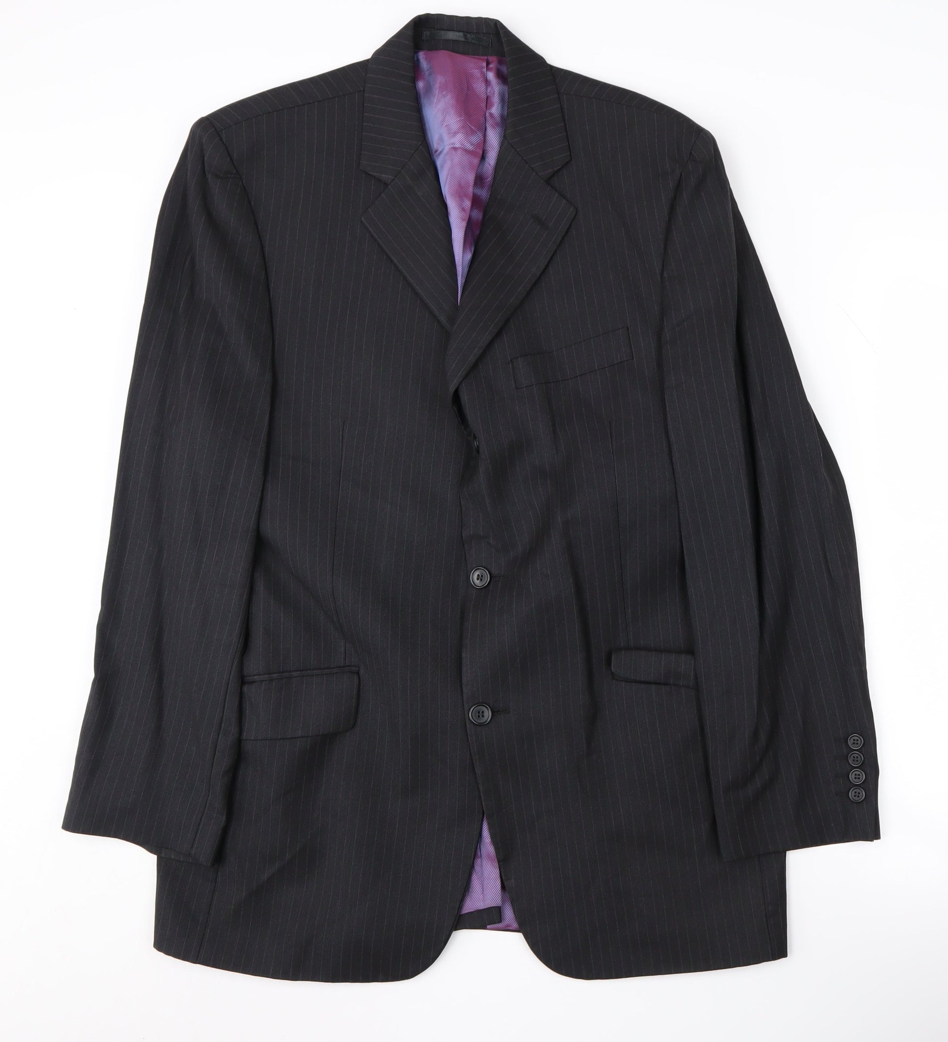 Daniel Hechter Black Men's Suit Jacket Wool, 40R Striped Formal