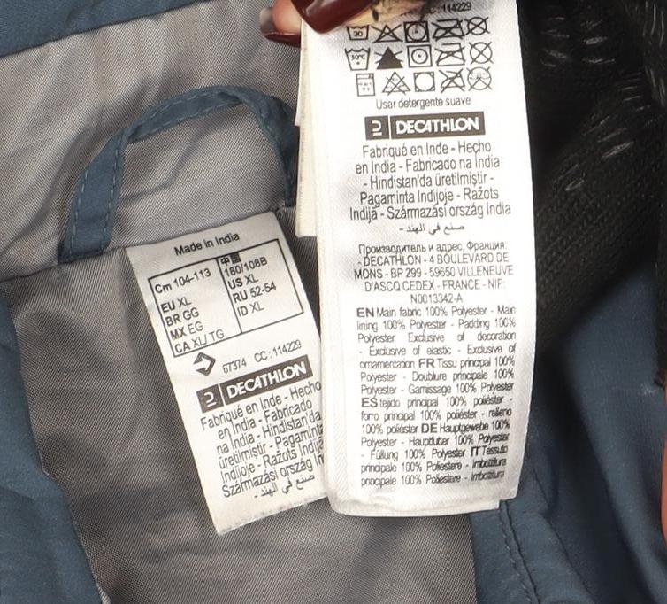 Decathlon Men's Blue XL Puffer Jacket Lightweight Full Zip Hiking Coat