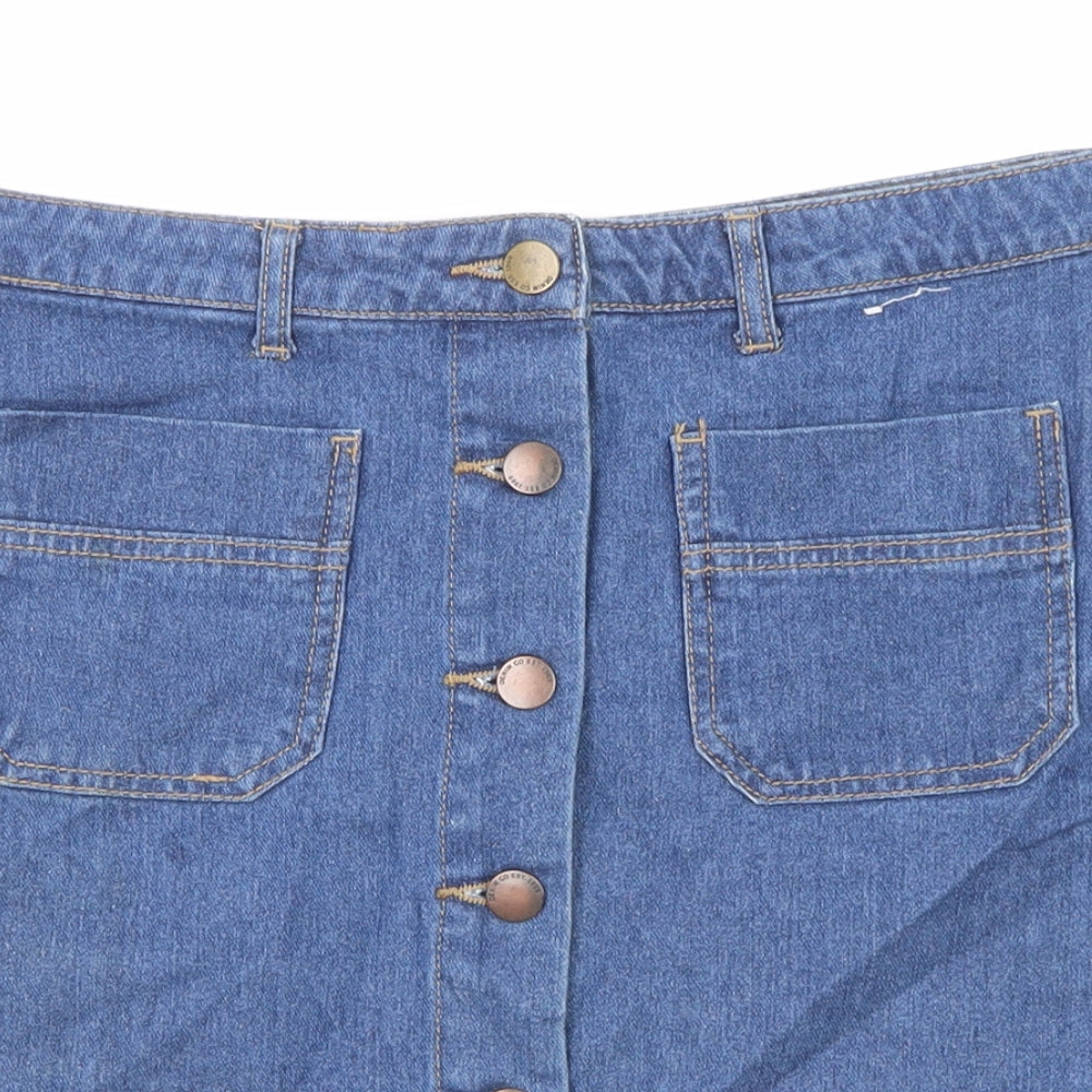 Denim & Co. Womens Blue Cotton A-Line Skirt Size 10 Button