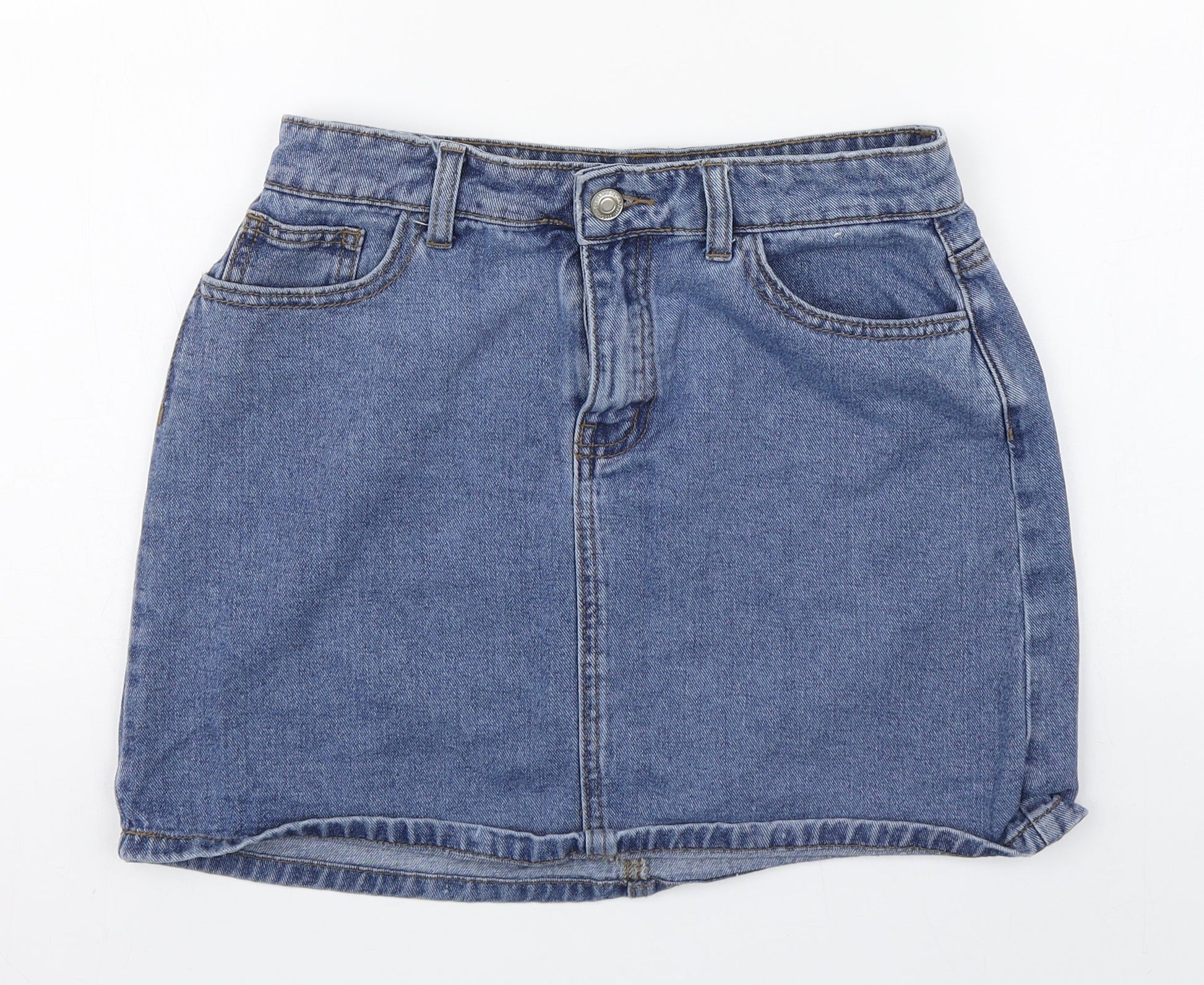 Denim co. Womens Blue Cotton A-Line Skirt Size 12 Zip