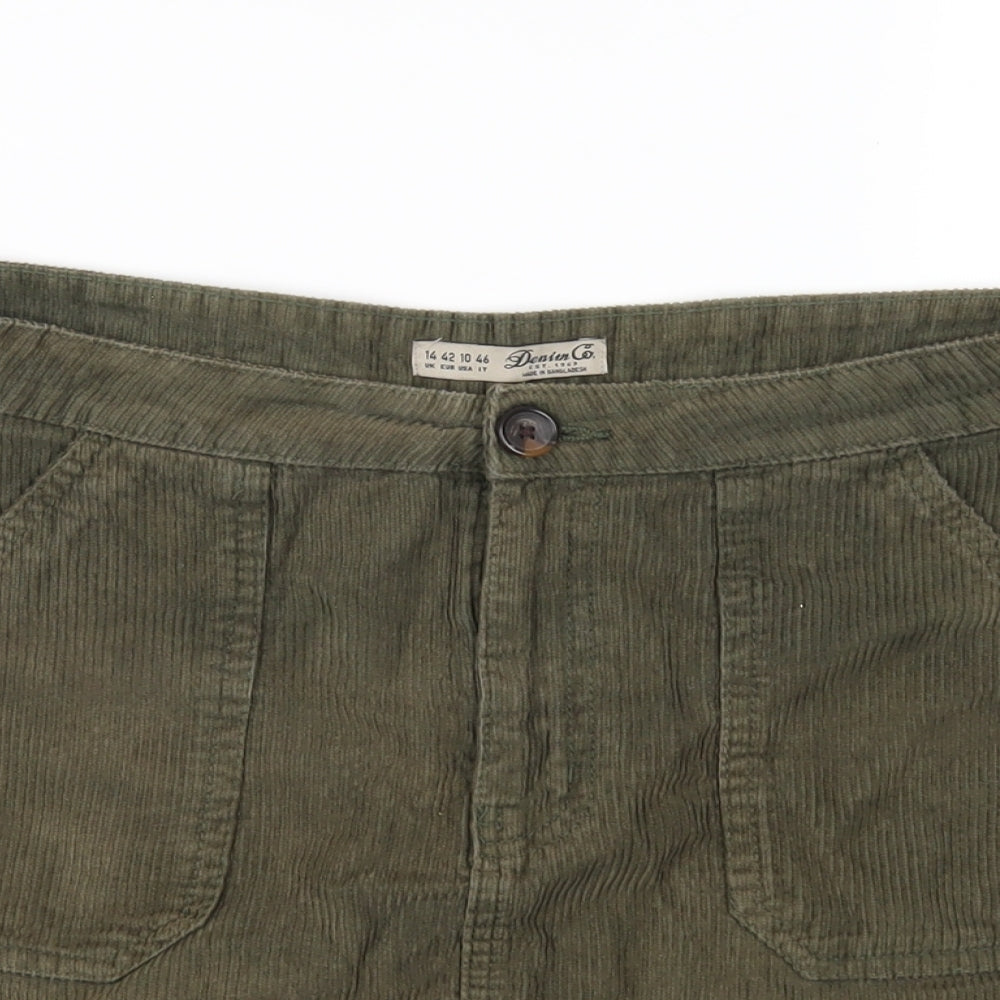 Denim & Co. Womens Green Cotton A-Line Skirt Size 14 Zip
