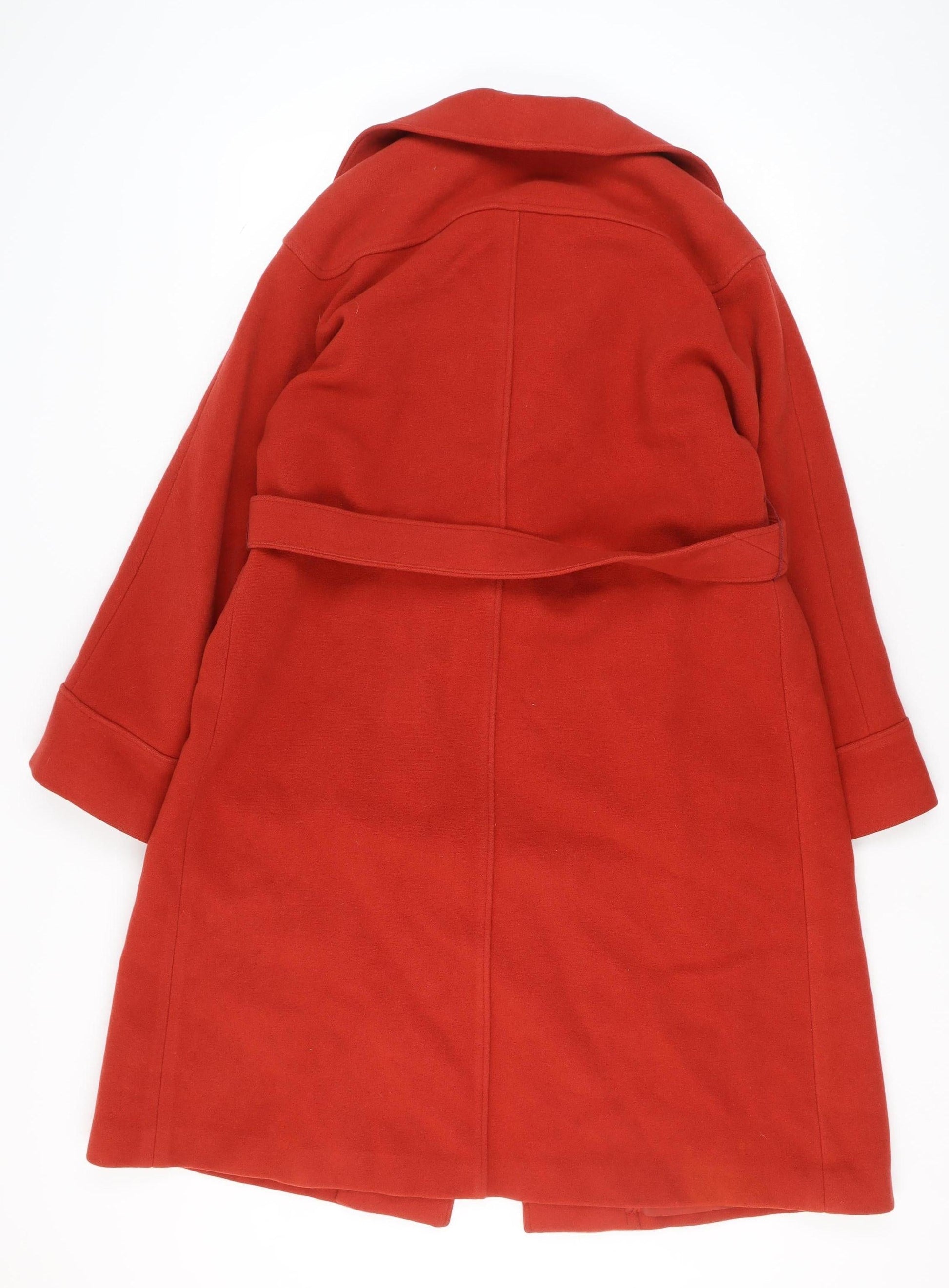 Dereta London Women's Red Wool Belted Long Overcoat Size 18