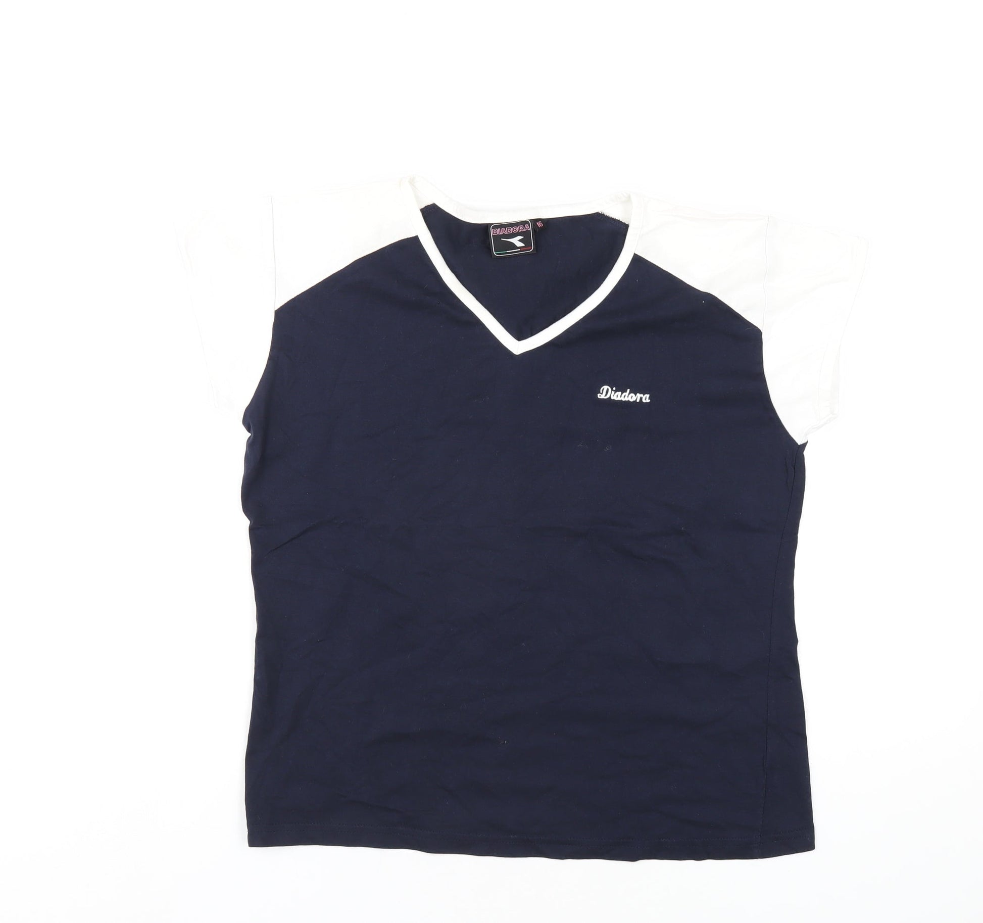 Diadora Womens Blue Cotton Basic T-Shirt Size 16 V-Neck