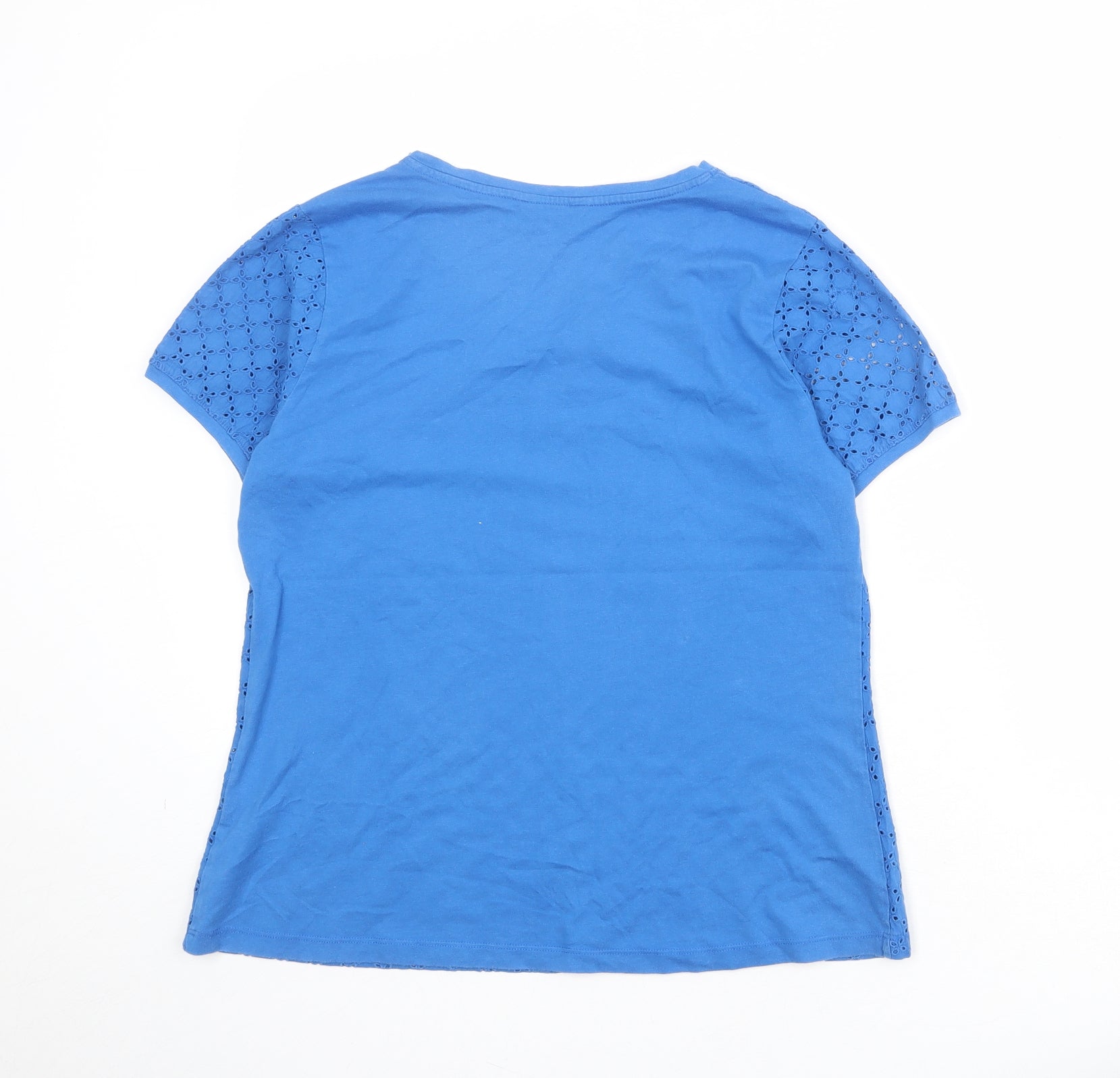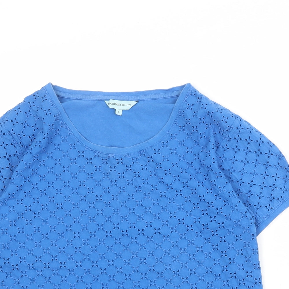 Dickins & Jones Womens Blue Geometric 100% Cotton Basic T-Shirt Size L Round Neck