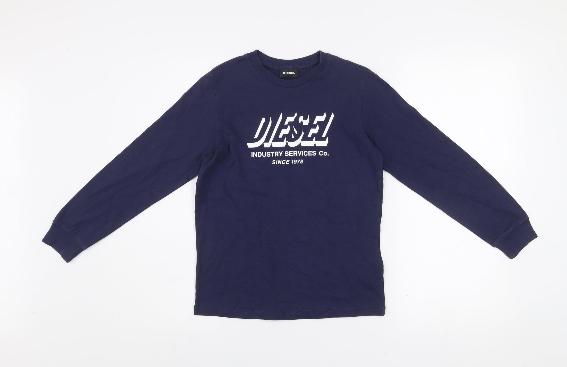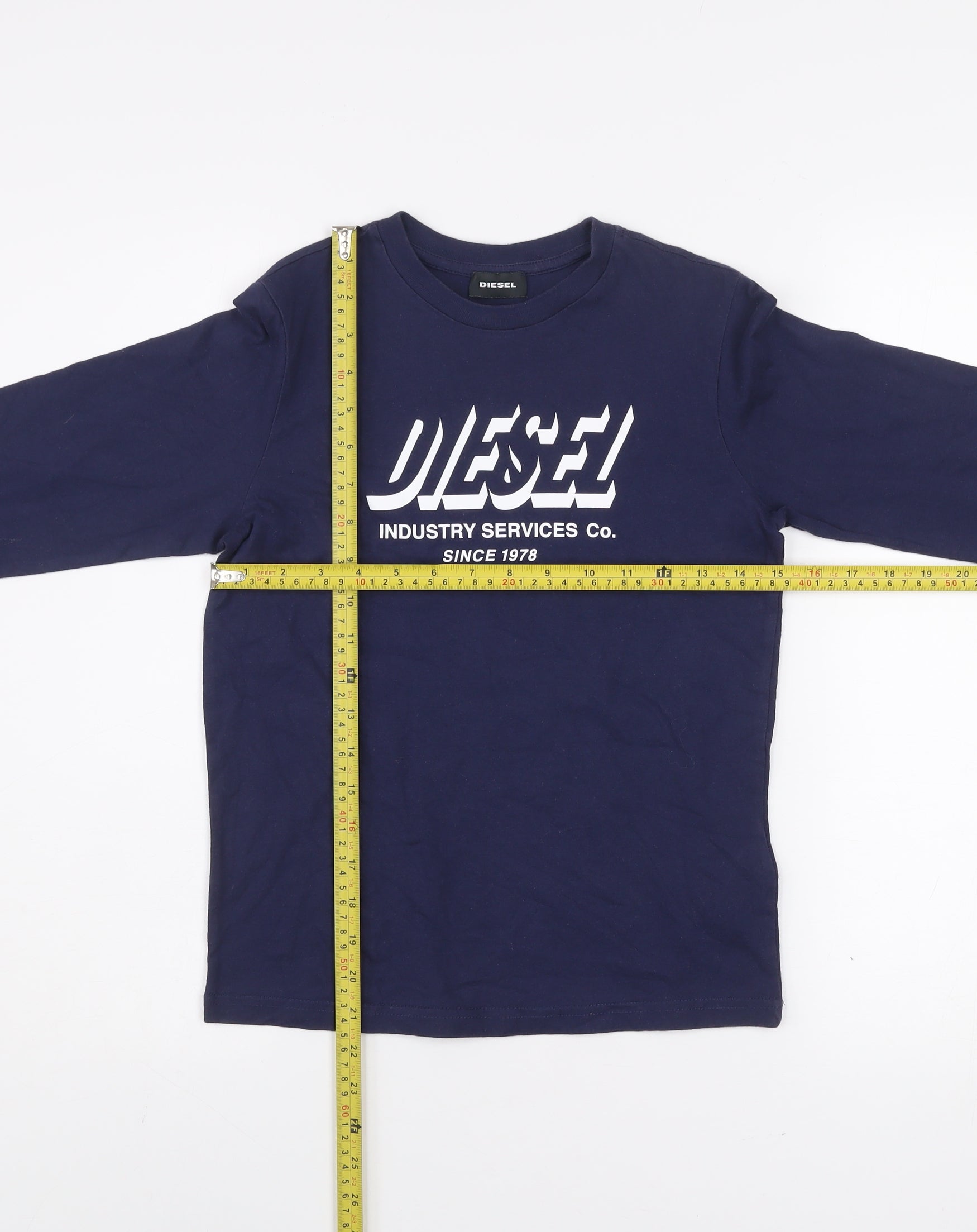 Diesel Boys Navy Blue Long Sleeve Crew Neck Graphic T-Shirt Size 10